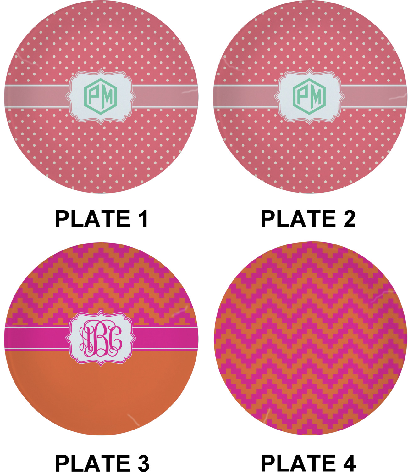 With a of designs and patterns, these plates are completely customizable. Choose a foodie design, complete with red-hot chili peppers, or go classic with stripes or plaid. Include your monogram or family name to make sure these plates never get lost at parties!