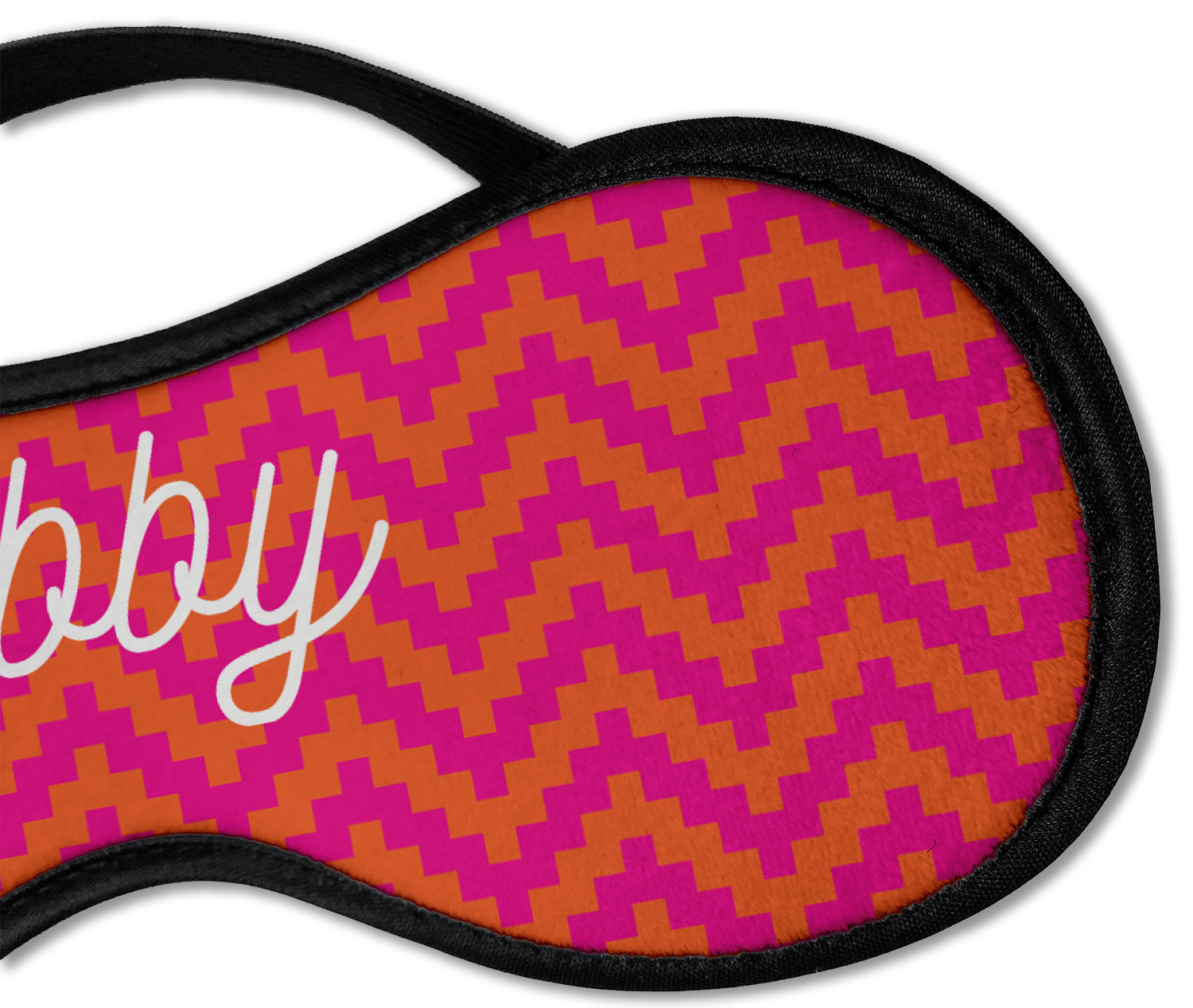 This eye mask has a super soft fleece on the back so that your face will feel snug. The front is personalized by you! There is a black elastic band that goes behind your head. The band is stretchy enough to be a one size fits most. The eye mask comes in 2 sizes: small for regular adult sizes and large for a larger area coverage. The black lining and elastic give it a nice finished look. You will never sleep or nap more comfortably than with this eye mask. These are great for napping when traveling or just at home!