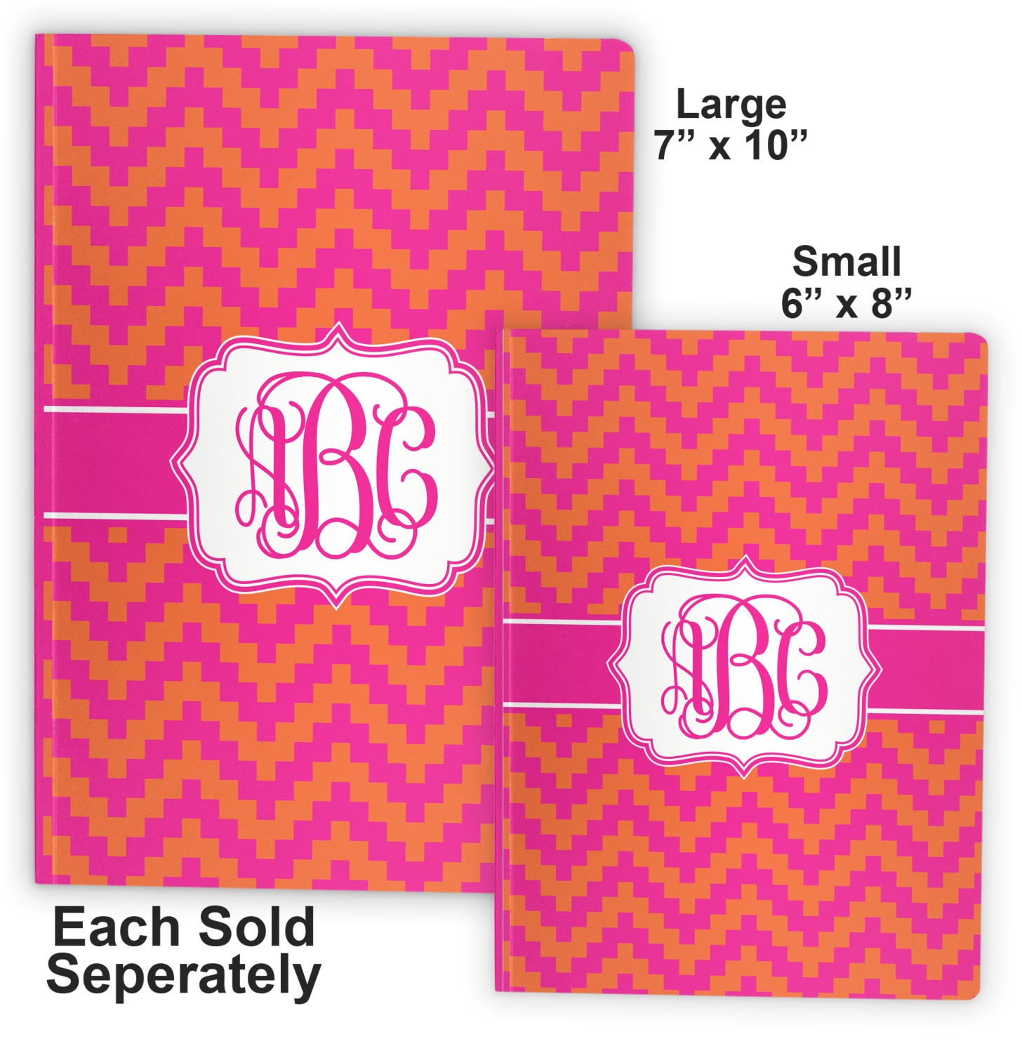 We offer these notebooks in two different sizes. The small notebook is 8" x 5.75", and fits snugly in purses or totes. The large notebook measures at 10" x 7.25", and can be carried in briefcases and backpacks.