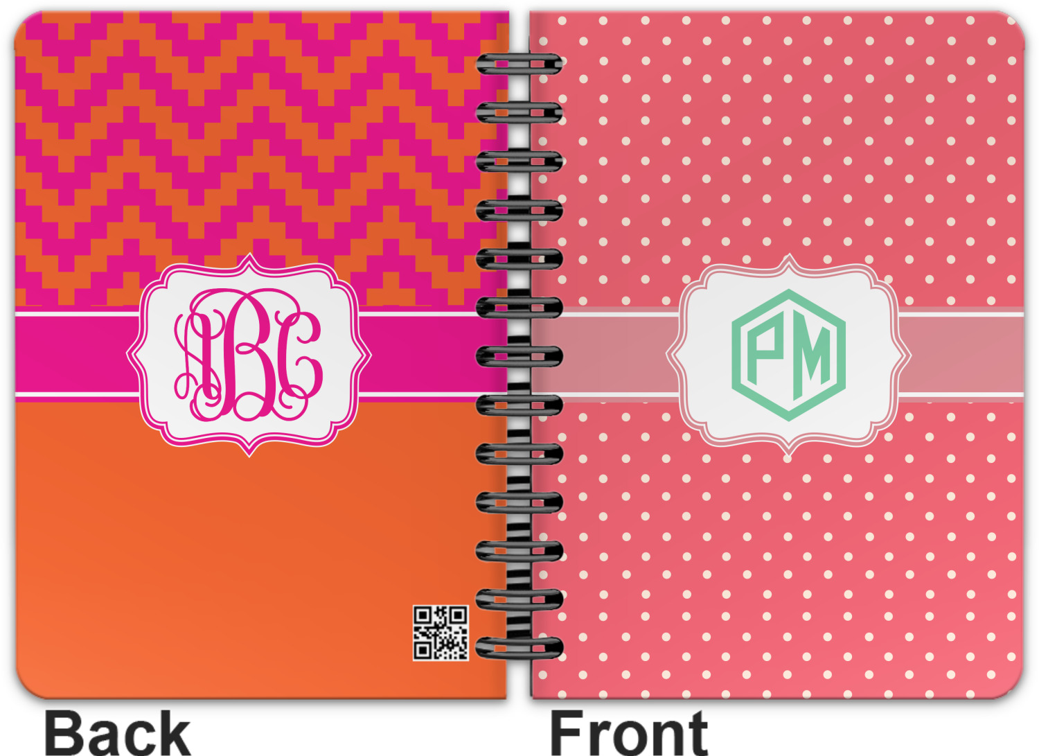 This spiral notebook includes 75 sheets of thick, ruled paper. The front and back of this custom notebook is made of a robust, laminate, plastic covering. We print your personalization on these two panels, underneath a glossy finish, which emphasizes the colors of your design. The two panels and the sheets of paper are held together by a sturdy, black coil. The paper within your bound notebook is perforated for easy, clean tearing.