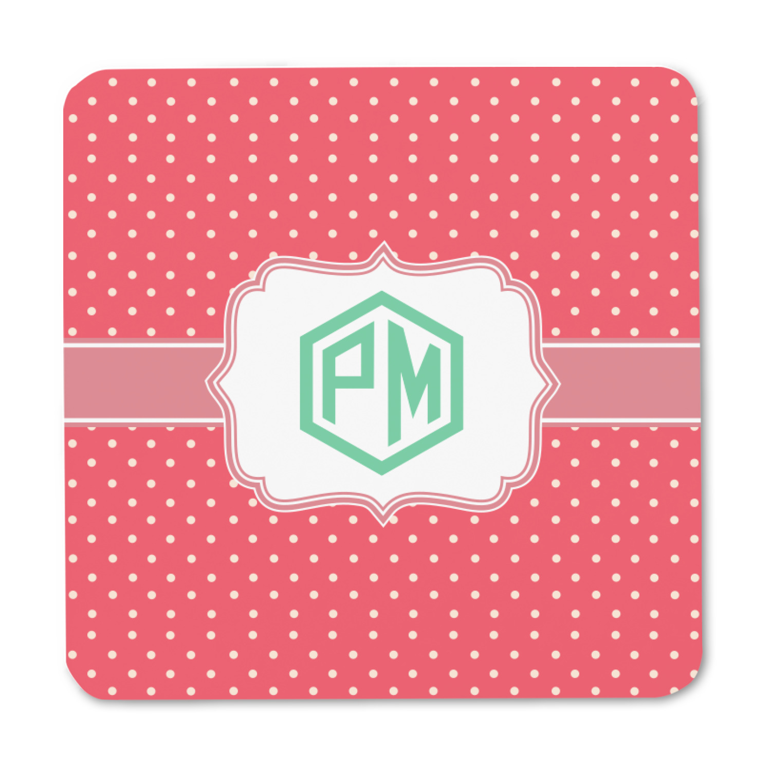 The pixelated chevron stripe pattern alternates between the hot pink and orange. The design has a classic ribbon in hot pink with white stripes. The decorative rectangular label is also in hot pink and white. The personalization is the gorgeous interlocking monogram in hot pink to pull the entire design together.