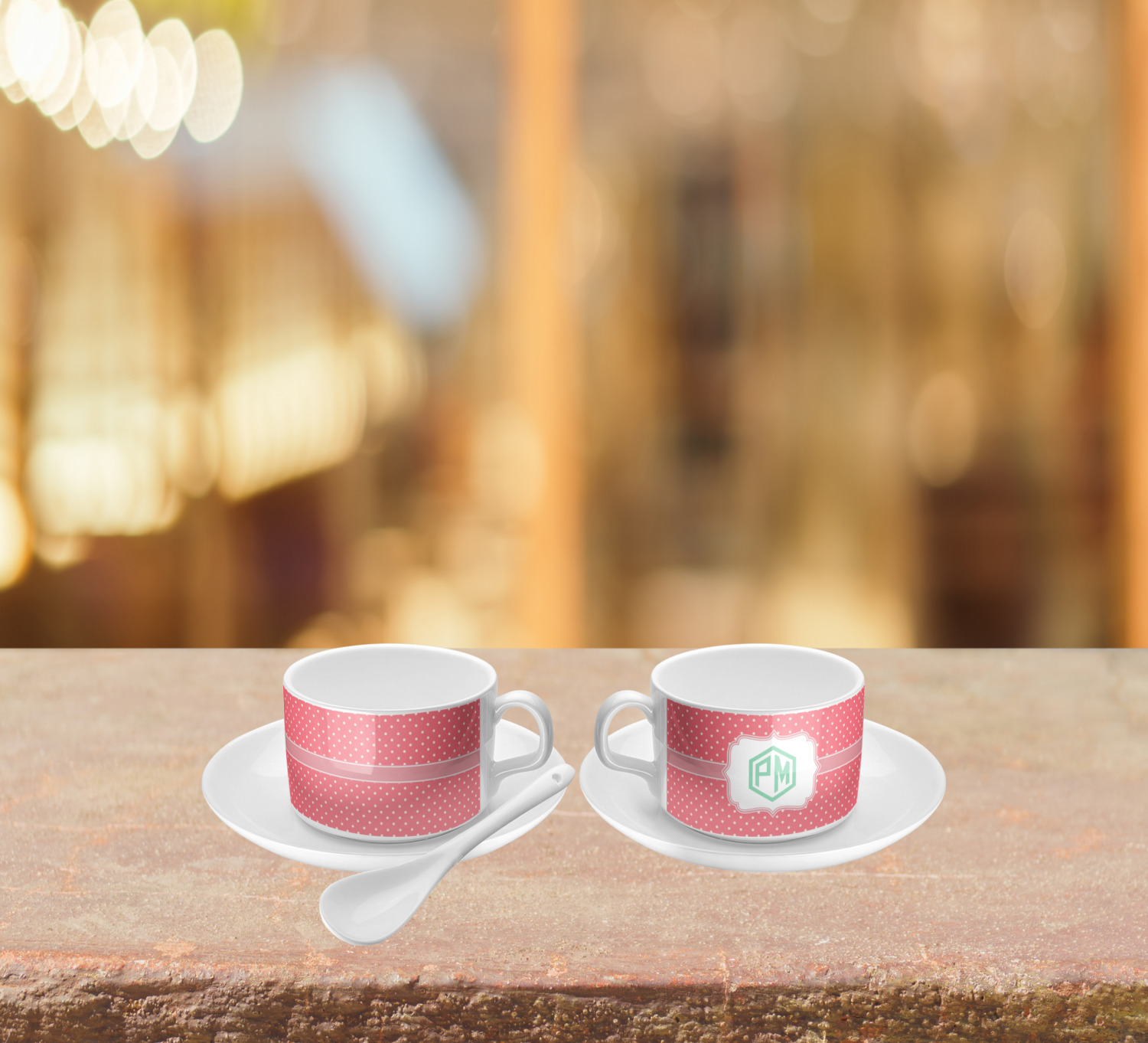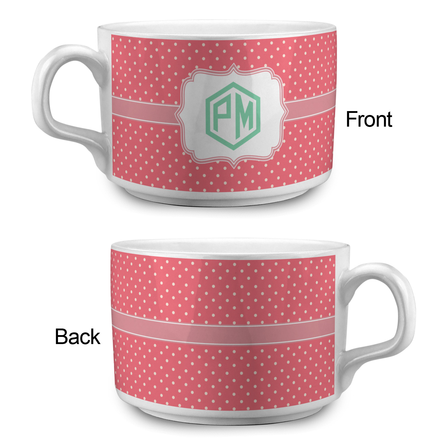 Personalize your cup with the perfect design! The white ceramic makes for a bright background to whatever personalization you decide to add to your little cup. Give your tea or coffee some class! Choose from thousands of patterns and fills in our system to fit your personality! Change whatever elements you like from the text to the ribbons to the graphics.