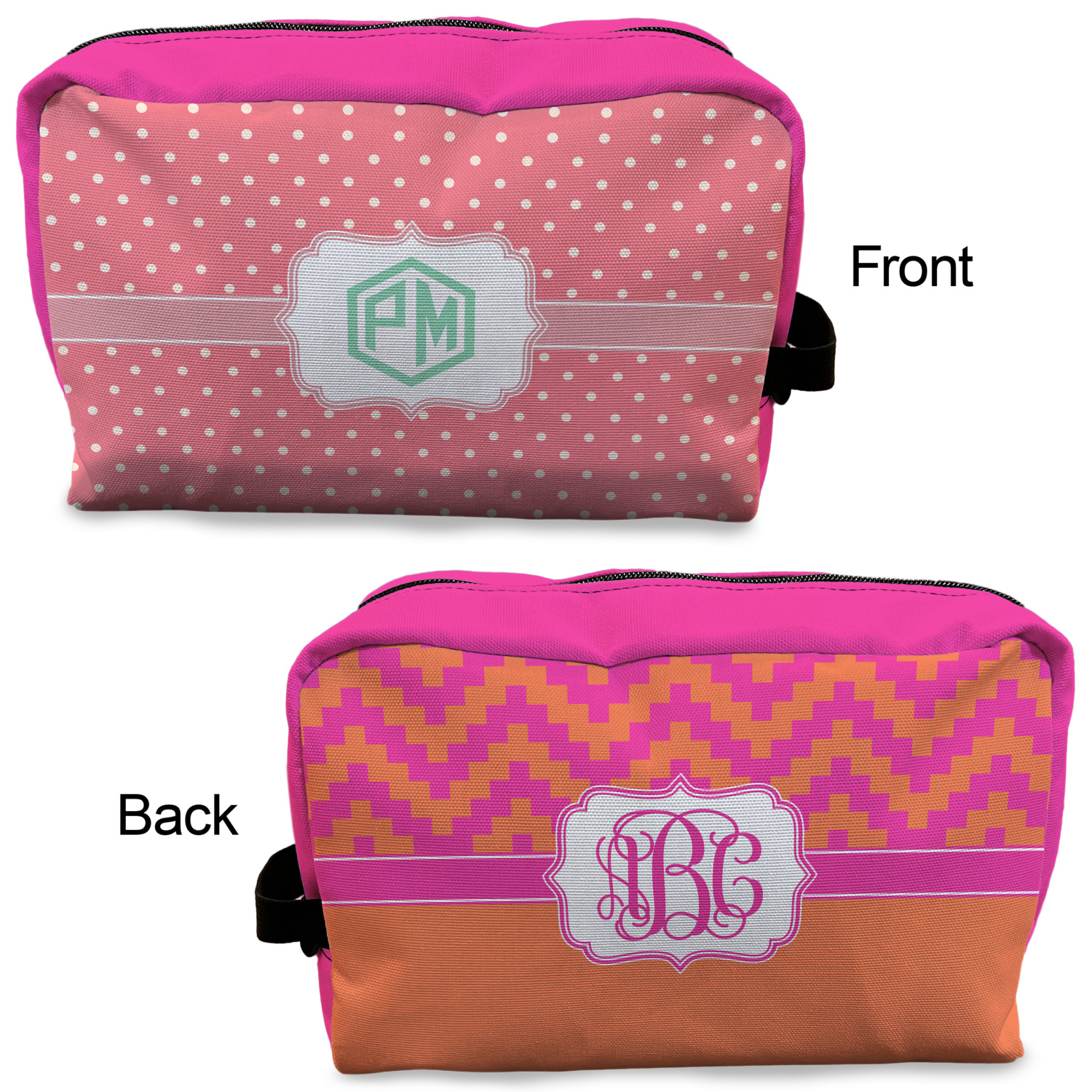 Designing a toiletry bag for yourself or as a gift can be a lot of fun. Our goal is for you to design a bag that reflects your personality and personal style. Our dopp kits are set up so you can design the front, the back and select a coordinating color for the zippered area.