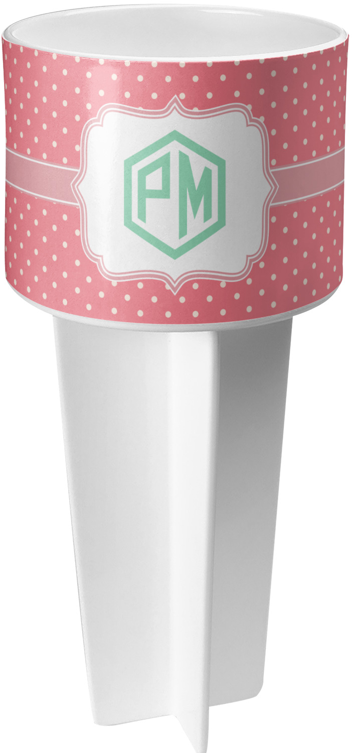 This cup holder has a large stake at its bottom that anchors it to the sand or ground below, while the cup holder rests above the stake. The entire drink holder is made of durable plastic and displays your customization around the cup holder portion. We sell these personalized beach spikers in two different colors: black and white.