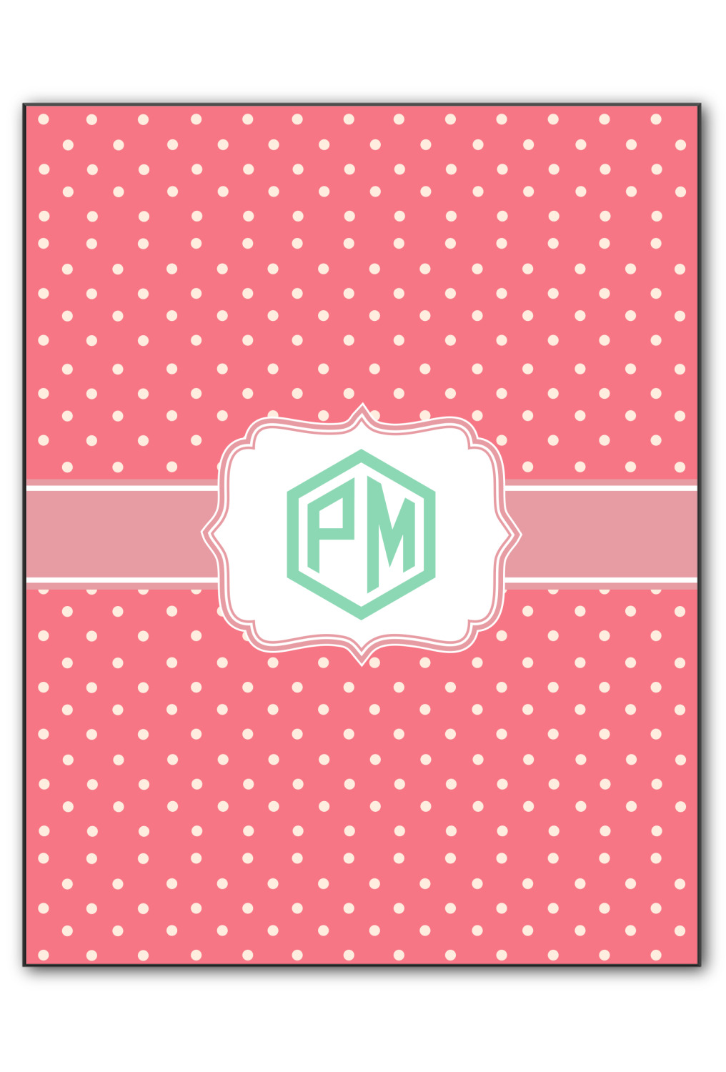 The pixelated chevron stripe pattern alternates between the hot pink and orange. The design has a classic ribbon in hot pink with white stripes. The decorative rectangular label is also in hot pink and white. The personalization is the gorgeous interlocking monogram in hot pink to pull the entire design together.