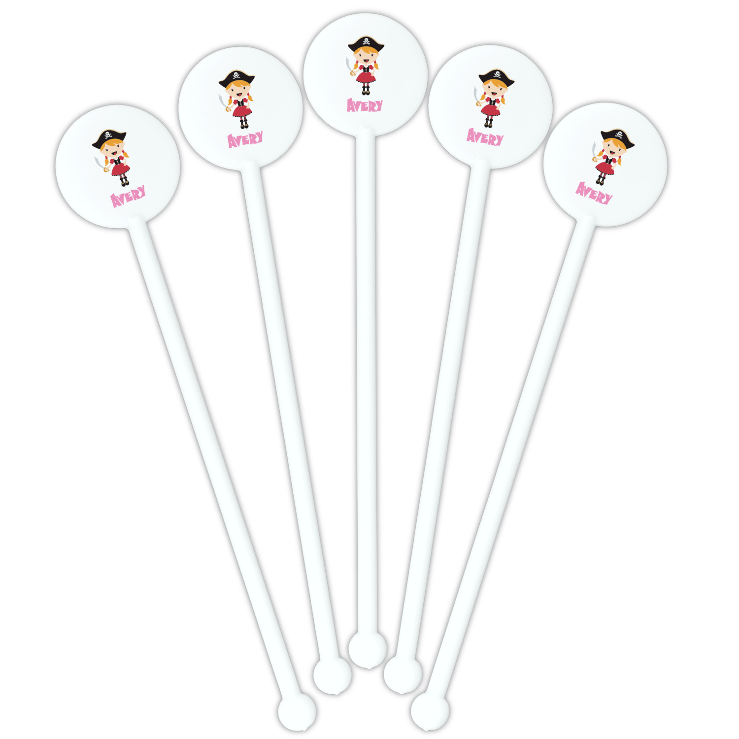 Pirate Girl Designs for 5.5" Round Plastic Stir Sticks - White - Double-Sided