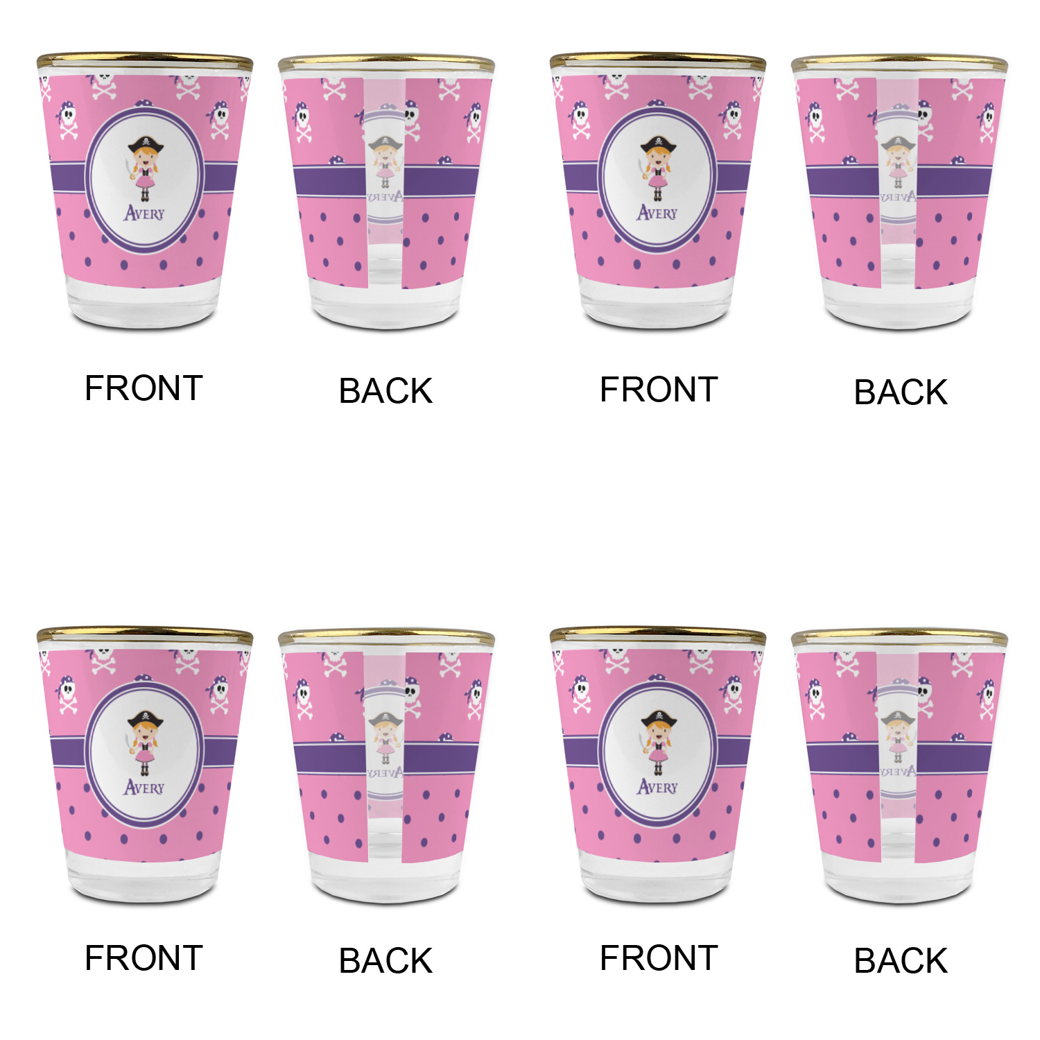 Pirate Girl Designs for Glass Shot Glasses - 1.5 oz - with Gold Rim - Set of 4