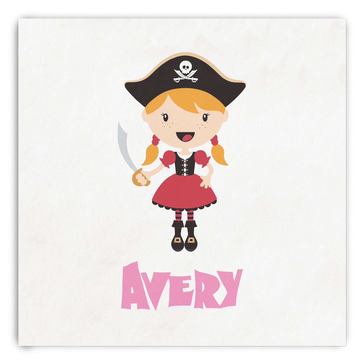 A wide band of purple, trimmed in white, highlight the little pirate girl in the white circle label that is trimmed in the coordinating purple color. Add your personalization in the label to complete the look.