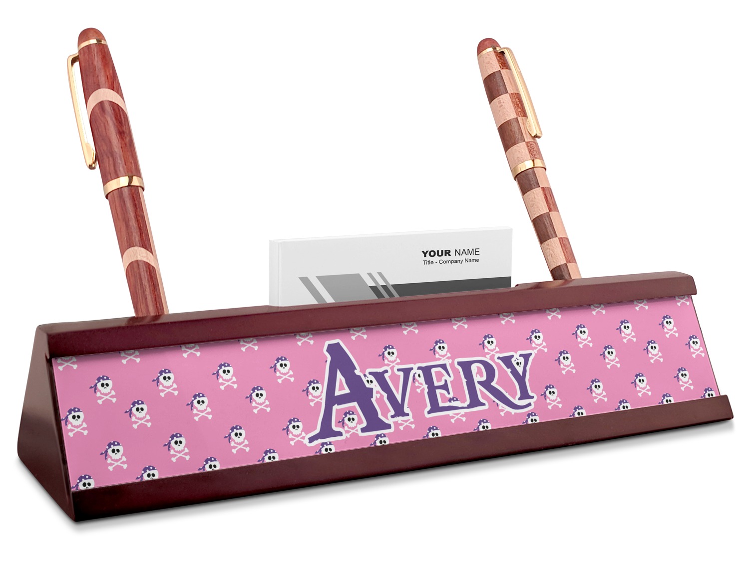 Pirate Girl Designs for Red Mahogany Nameplates with Business Card Holder
