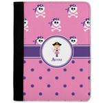 A wide band of purple, trimmed in white, highlight the little pirate girl in the white circle label that is trimmed in the coordinating purple color. Add your personalization in the label to complete the look.