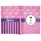 Ahoy there matey, do you have a little pirate girl on your hands? If so, then she is sure to love this girly girl pirate design that features the classic skull and crossbones pirate print. The skull and crossbones are highlighted using a backdrop of pink. They are adorned with purple and white polka dot dew rags. The coordinating bottom pattern of pink with purple polka dots ties the entire design together.