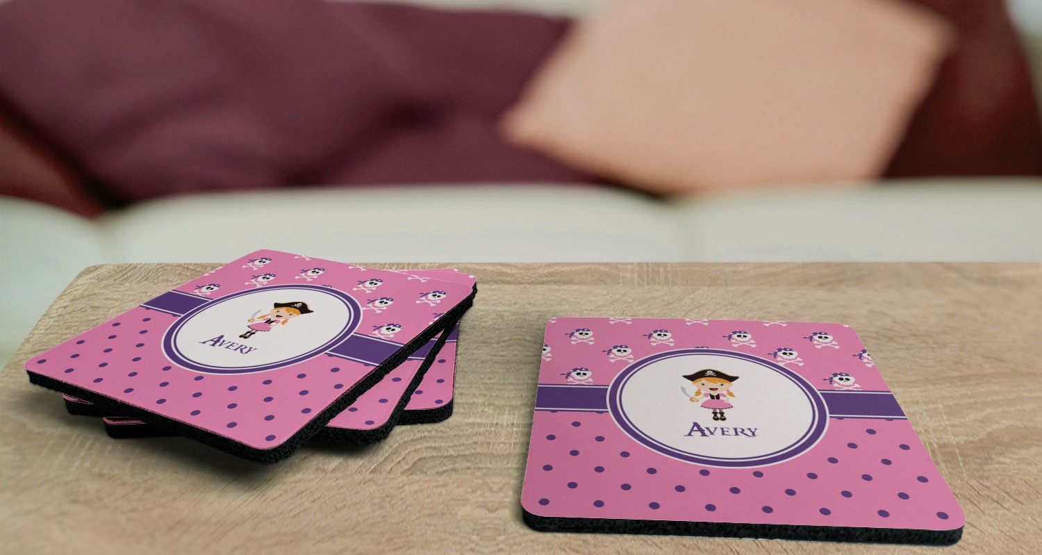 Pirate Girl Designs for Square Rubber Backed Coasters - Set of 4