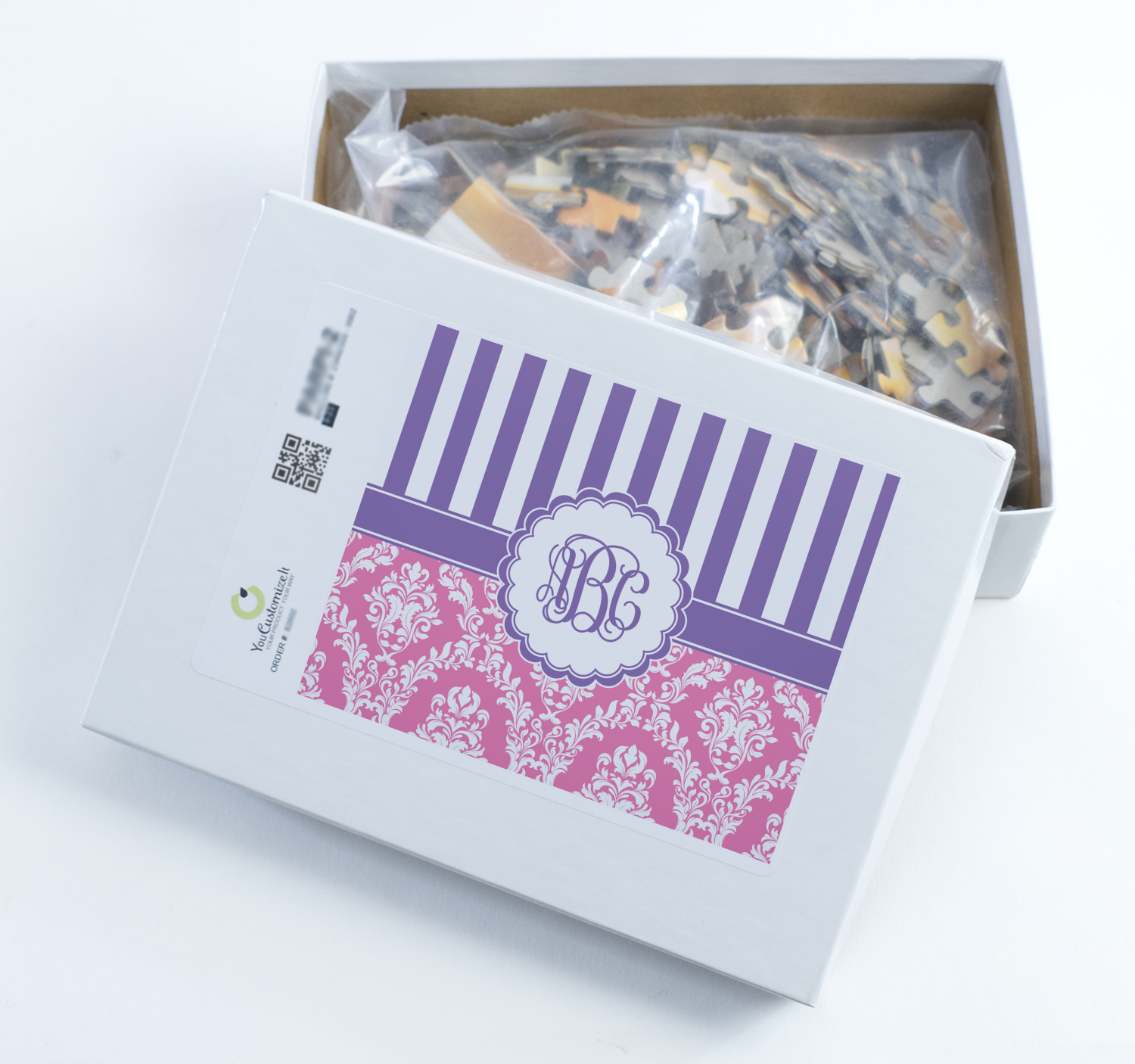 Depending on the look you are trying to achieve, you can add; a thematic pattern or background, with a photo in a frame and text or personalization to your puzzle. Basically if you can imagine it, you can design it!