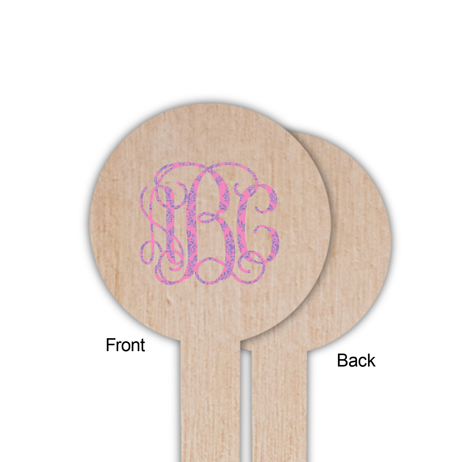 This stunning design is very feminine and elegant. It has simple, yet classic purple and white stripes on top with the stunningly elegant damask in pink and white on the bottom. The design is trimmed with a classic purple ribbon, along with a scalloped label and ever so beautiful interlocking monogram.