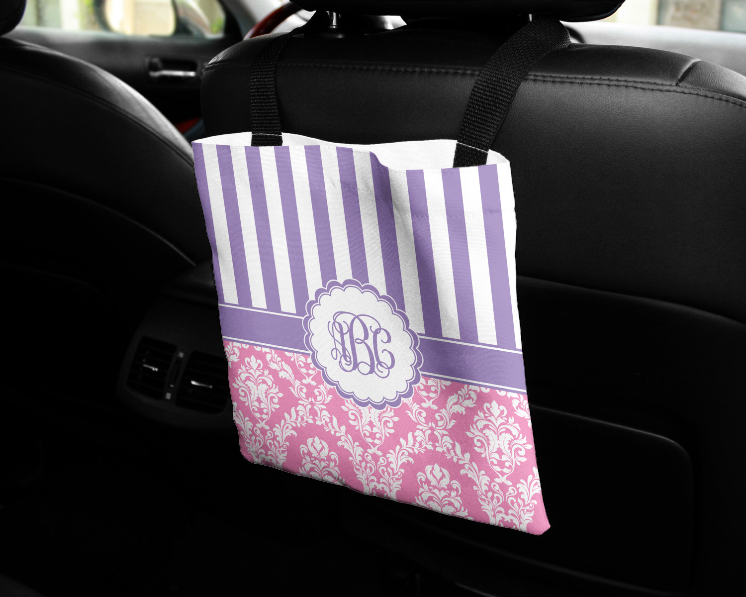 These car back seat organizers are sturdy tote-like bags, fabricated from a robust polyester, and features a single handle on the back side. The strap features an attachable velcro for easy attachment to headrests, grocery carts, car seats, and more. Simply undo the velcro, loop the strap around the headrest, reattach the velcro, and let the organizer hang from the front seat. These car organizers are the perfect means of increasing your backseat's legroom, while storing multiple items in one place for better accessibility. Each car back seat organizer measures at 10 by 10 inches, and features your personalized design printed across its front and back.