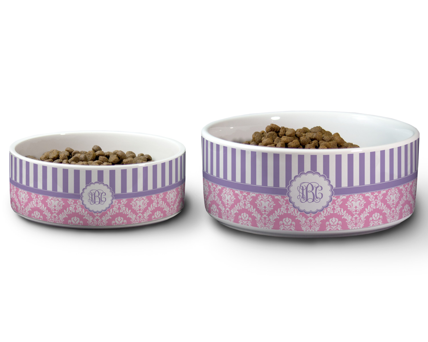 Our customized, ceramic dog bowls allow you to fashion a durable, yet expressive gift for your pet. These bowls are fashionably versatile; they suit both cats and dogs and can hold either food or water. Add your pet's name or favorite color to the design, and spruce up his/her eating area with one or two personalized pet bowls!