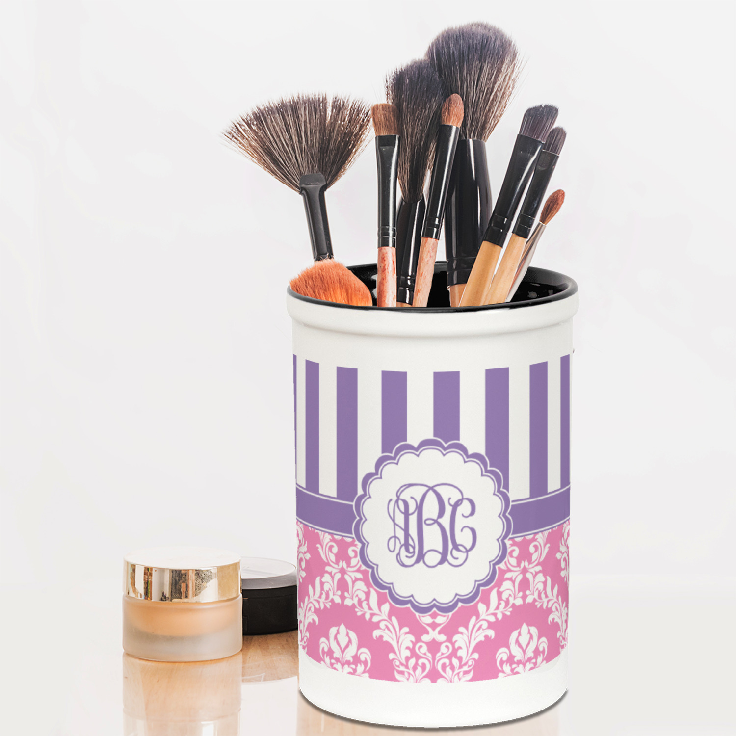 Need help with keeping the workspace clean and tidy? Try using our customizable pencil holders! They're great desk accents for the office, kids desk, or even vanity mirror. Our custom pencil holders are ideal for holding pens, pencils, and even brushes to keep your area from any clutters. The best part about our custom desk pen organizers is the two-toned look! Choose one from either our black or blue interior and customize the outside of the pencil holder with your own personalized design! Use our online design studio to create logos, monograms, or even print a favorite photo to display on the cup holder! Create a cute pencil holder for the kid's desk, or add a cool design to hold any brushes. The options are endless!