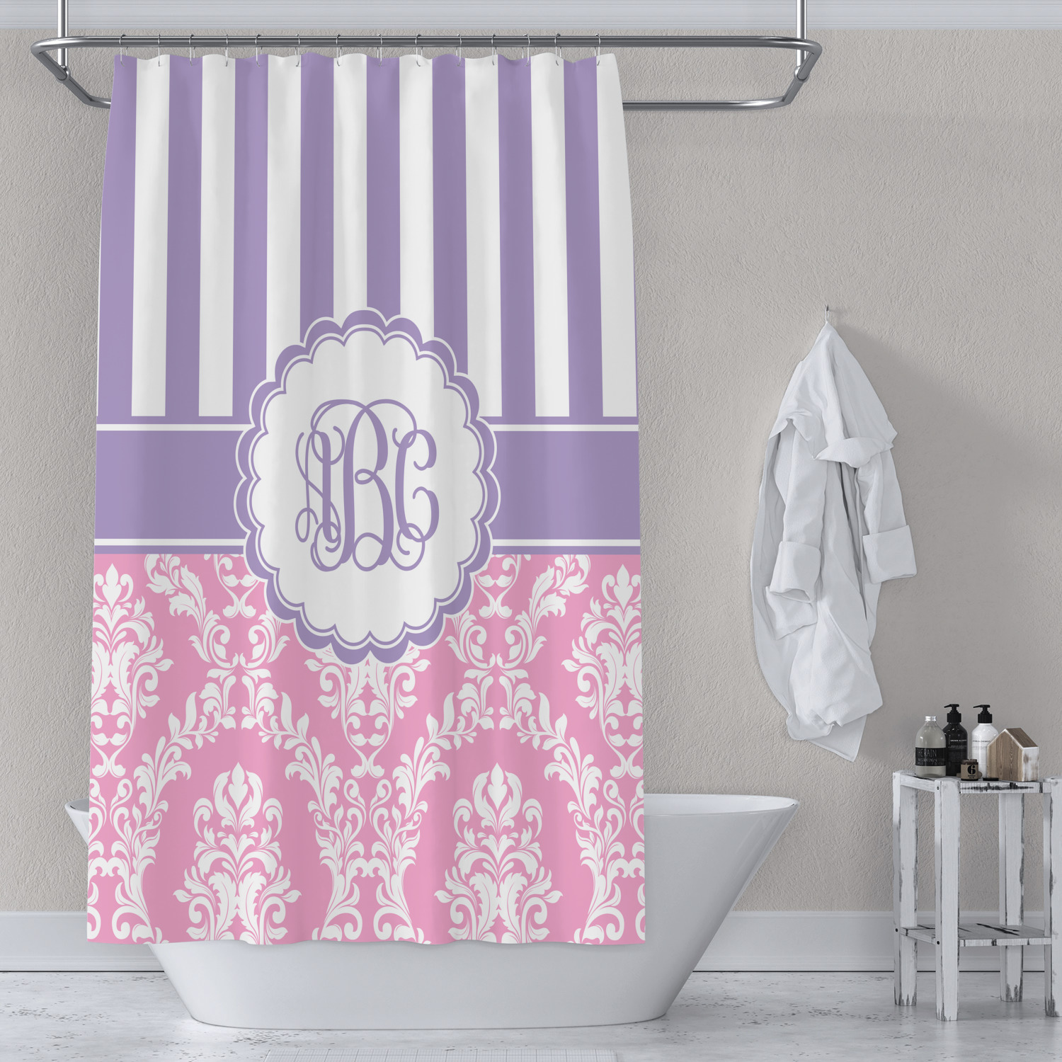 | SKU | mi-shower-curtain-7090+Pink-Purple-Damask |