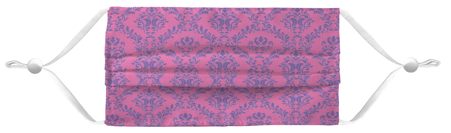 These fun face masks are 7" wide and 3.5" high. They feature pleats, adjustable ear loops, and are made with two layers of fabric. The top layer where your design is printed is a breathable polyester sheeting, while the inside layer is a soft microfiber polyester