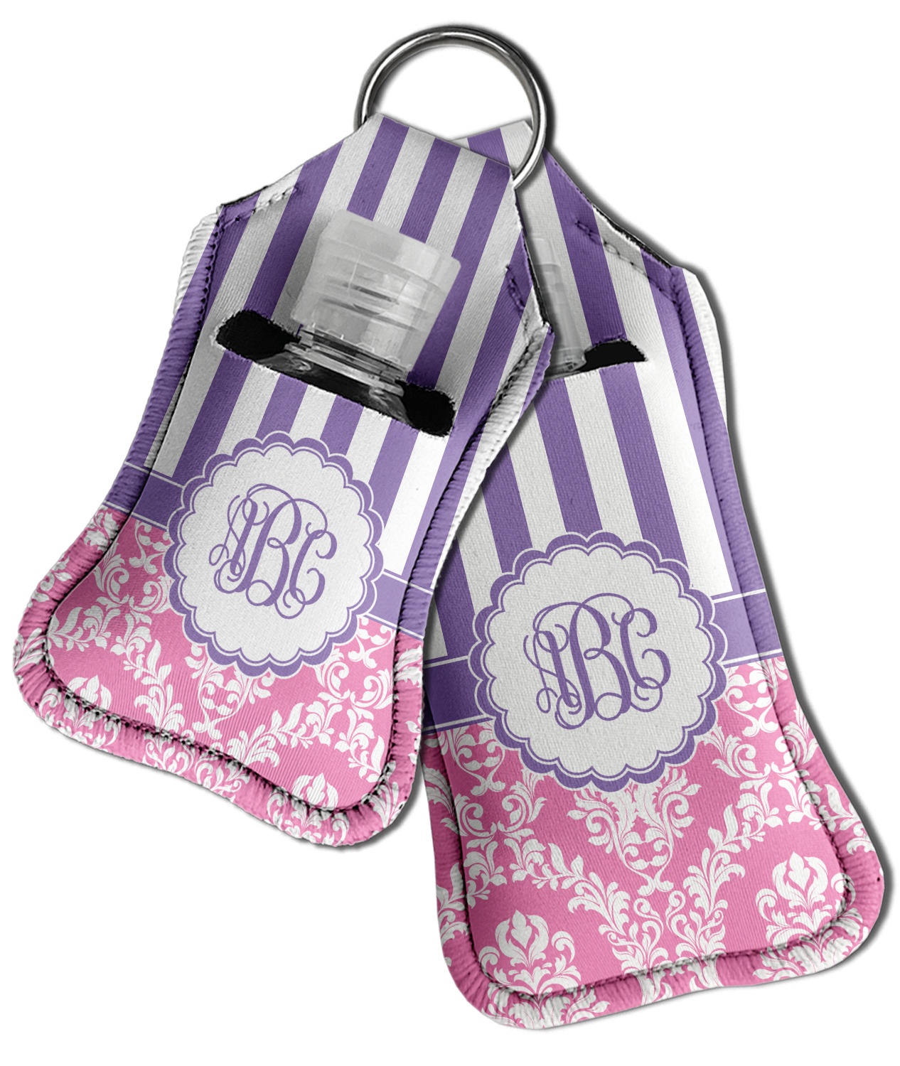 Each hand sanitizer holder comes with its own empty travel-sized, refillable hand sanitizer sure to fit snug in your customized sanitizer case! Our hand sanitizer cases are a durable, yet soft neoprene material sure to last any daily activities or travel agenda. Customize and personalize a hand sanitizer bottle holder with one of our two sizes - small (4.25" x 2.25") or large (5.5" x 2.5"). Each travel sanitizer holder comes with a keyring for attachment on bags, keys, or more!