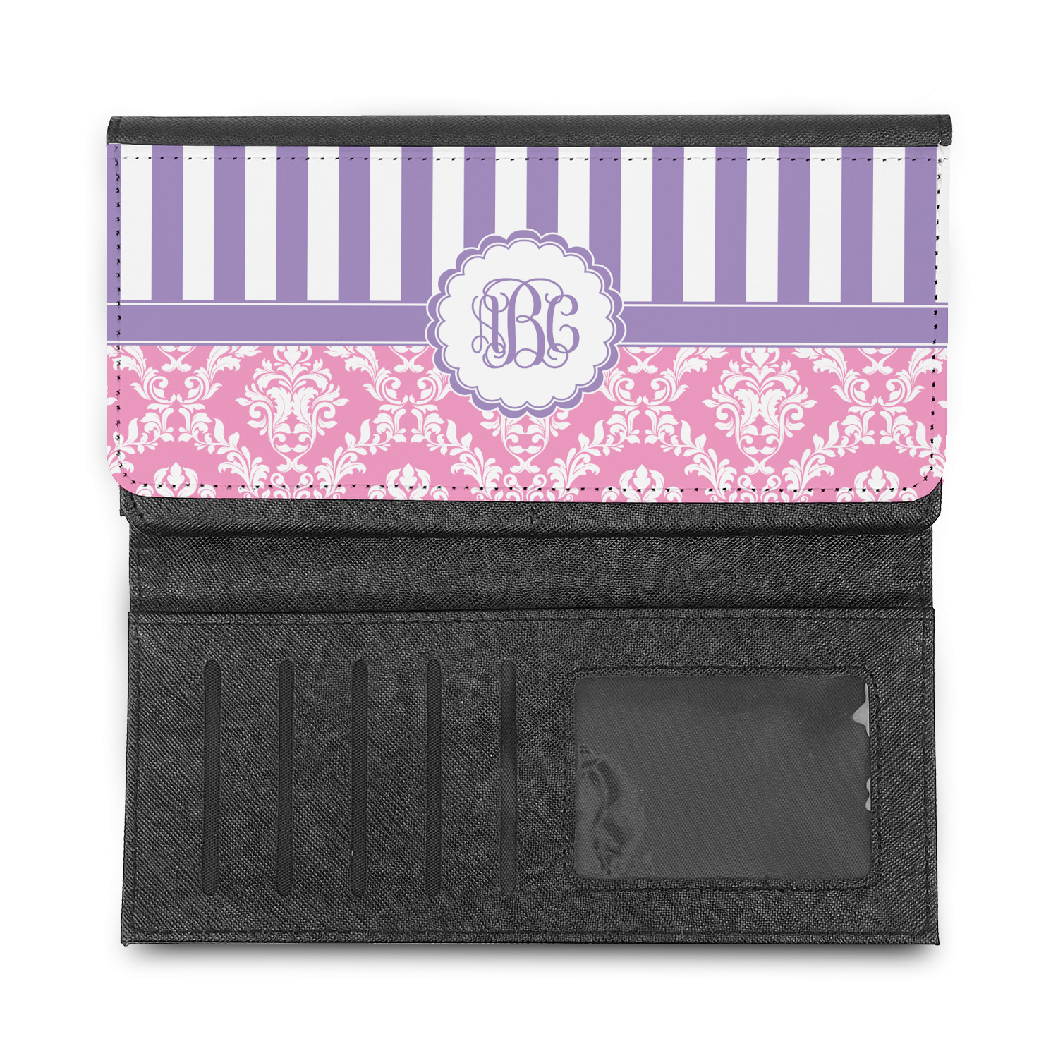 These leatherette ladies wallets can be customized with any one of our patterns (many patterns are available in multiple colors). Of course adding personalization (free) is your choice - you can include a monogram (interlocking is my favorite), a name, or one of our beautiful name and initial combinations.