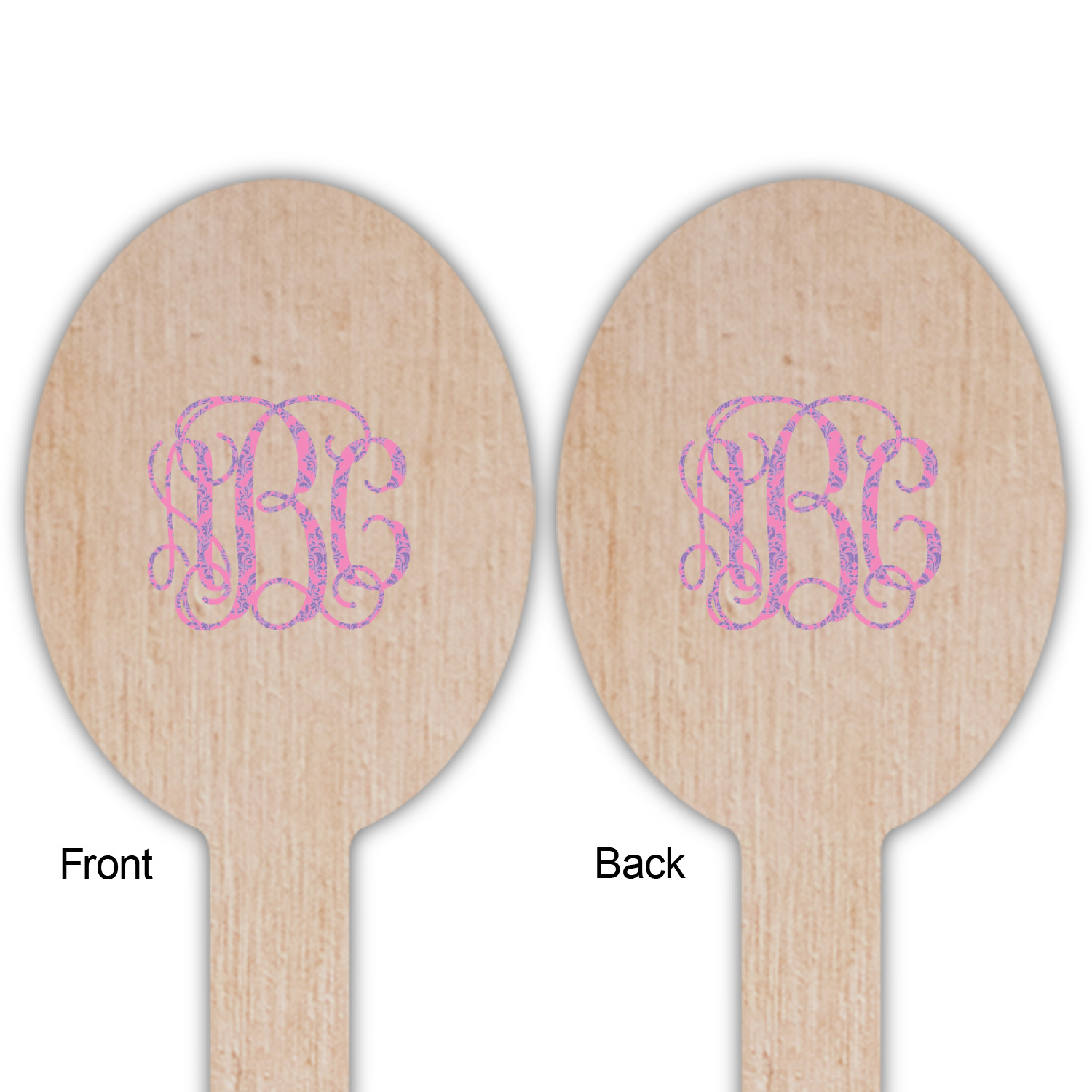 This stunning design is very feminine and elegant. It has simple, yet classic purple and white stripes on top with the stunningly elegant damask in pink and white on the bottom. The design is trimmed with a classic purple ribbon, along with a scalloped label and ever so beautiful interlocking monogram.