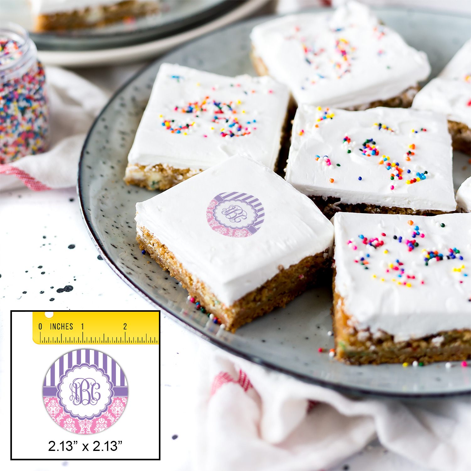 Your customized cookie toppers can be placed on top of any dessert with an icing top.The icing helps adhere the cookie topper to the dessert.