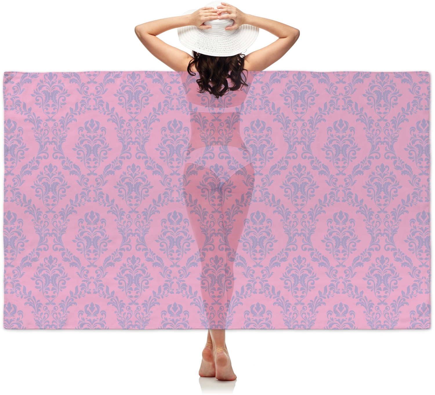 This sarong is 42" x 70" of personalized beauty. It is made of a soft polyester for comfort when against your skin. The material is sheer, so it serves well as a swimsuit cover-up or a shawl. There are so many uses for this wonderful product that you will be sure to find when it is in your hands.