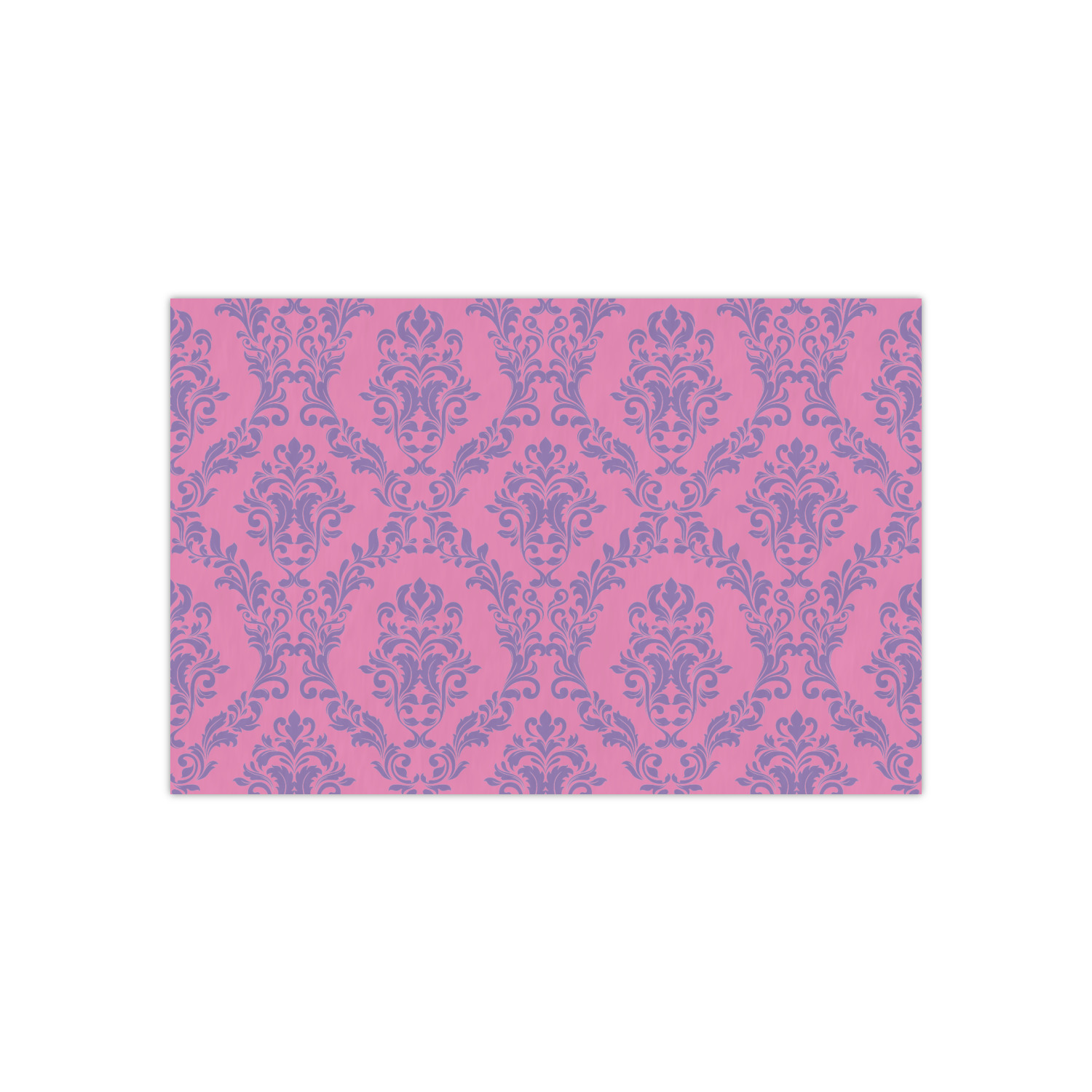 This stunning design is very feminine and elegant. It has simple, yet classic purple and white stripes on top with the stunningly elegant damask in pink and white on the bottom. The design is trimmed with a classic purple ribbon, along with a scalloped label and ever so beautiful interlocking monogram.