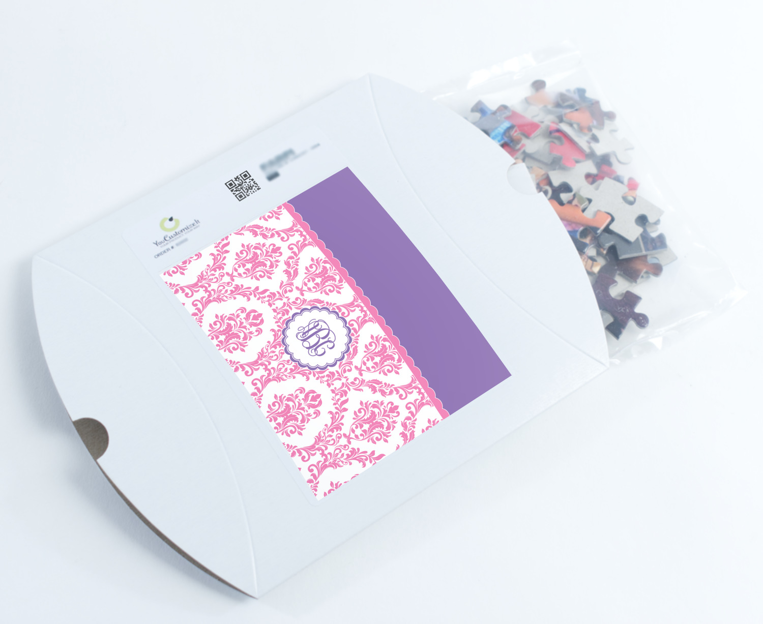 Depending on the look you are trying to achieve, you can add; a thematic pattern or background, with a photo in a frame and text or personalization to your puzzle. Basically if you can imagine it, you can design it!
