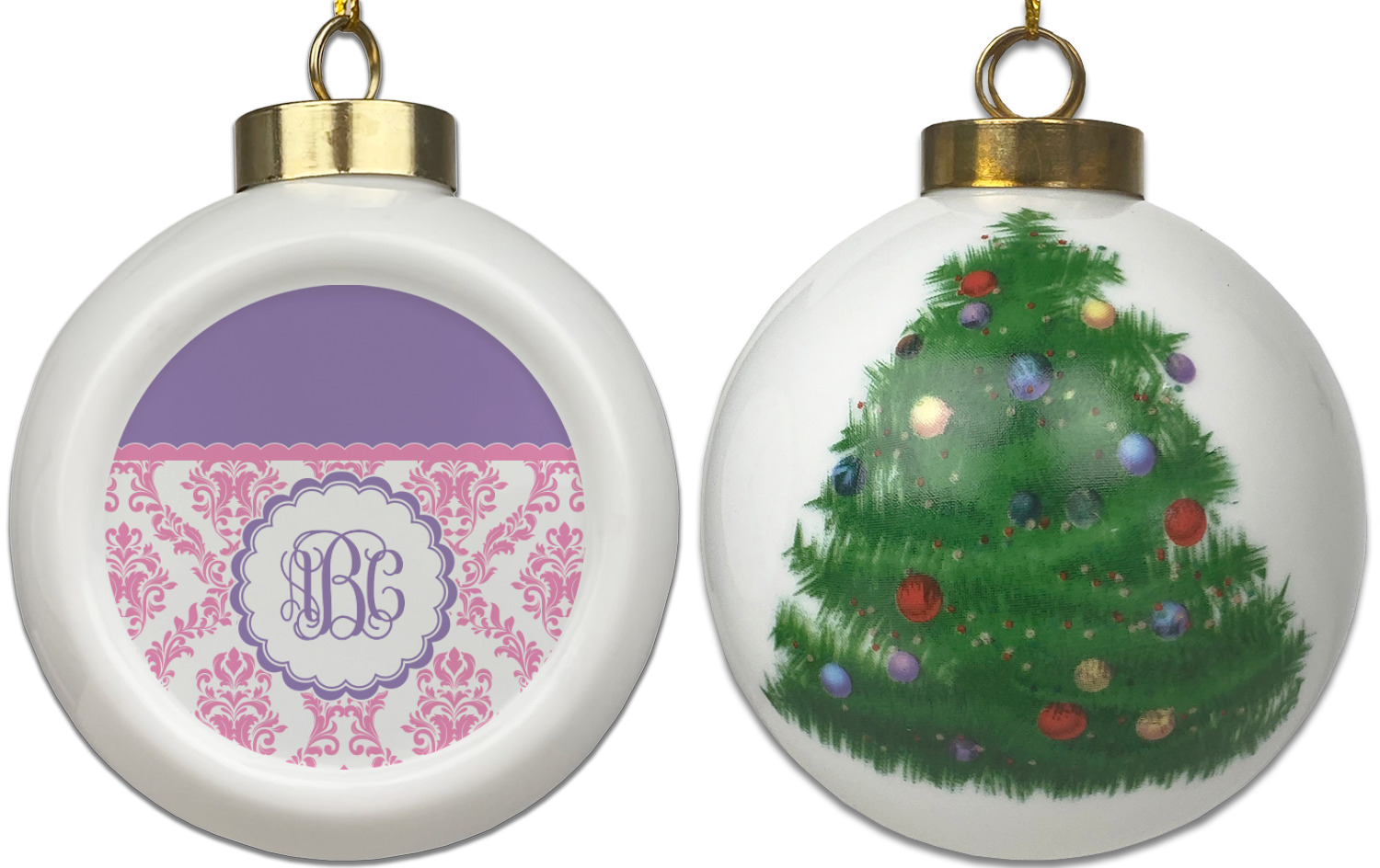 Our Christmas ornaments are a unique ceramic ball shape with a twist as it has a flat face to display your custom design! Select from one of our two design types - Christmas Tree or Poinsettia Garland - to adorn the curved back of your personal design. Each ornament measures 3H x 2.5W x 2D accompanied with a gold string accent for finishing touches to hang on your beautiful Christmas tree!