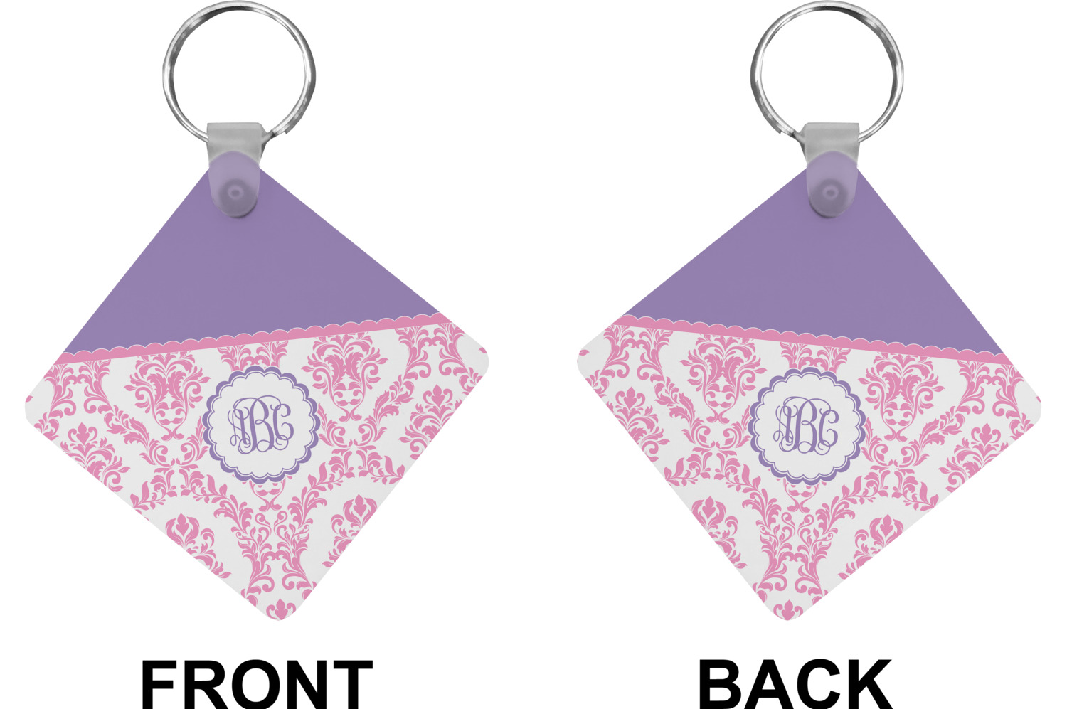 Our personalized keychains attach to the included metal, split key ring with a plastic, removable snap. Since a metal ring is included with your purchase, you have the liberty to keep your keys together on the ring, with or without your unique keychain. We offer this keychain in three different shapes: circle, heart, or diamond. We print your personalized design(s) on both sides of the key chain, and the surface has a glossy, reflective finish that only emphasizes your design. Each keychain is approximately 2.25 by 2.25 inches.