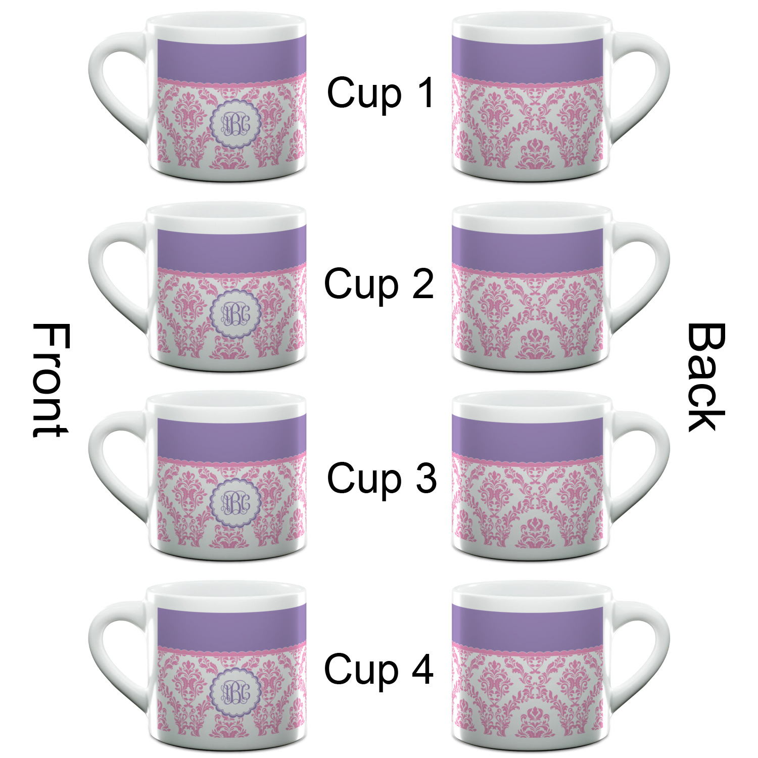 Each of our espresso mugs is a ceramic material sure to keep your drink warm. Personalize one cup for yourself, or order a set of 4! Its the perfect little gift for any coffee lover! We carry two sizes for you to personalize - 3 oz. (approx. 3.25" x 2.325" x 2.625") or 6 oz. (approx. 4" x 2.9" x 2.9"). Our 3 oz. mug is perfect for that single shot espresso while our 6 oz. mug can be your next favorite cappuccino cup holding two shots of espresso!