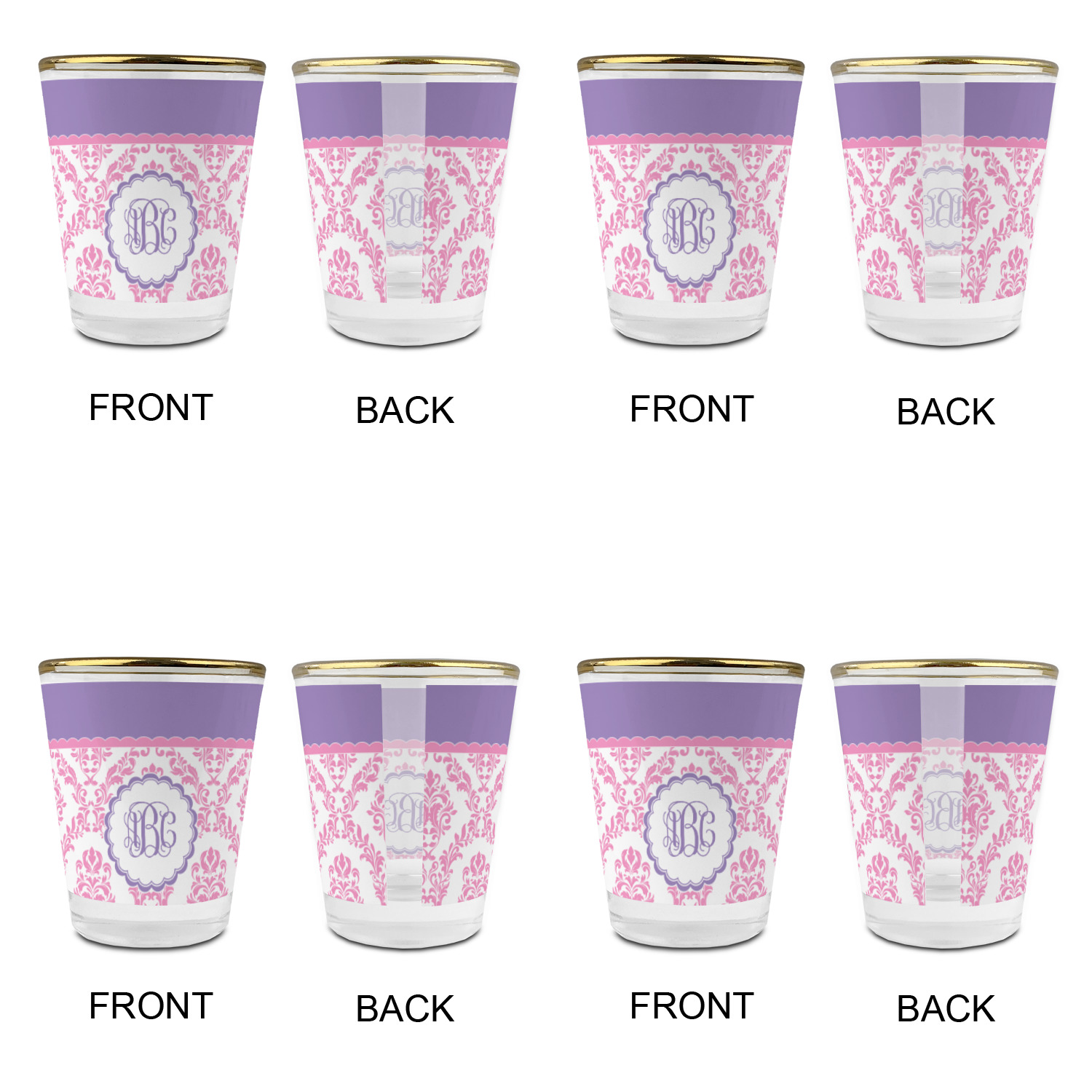 Made with frosted glass, these shot glasses are printed in full color with the design of your choice. They are a standard 1.5oz shot glass and are 2.4" tall. The print is wrapped around the shot glass in a full wrap and boldly displays your customization.