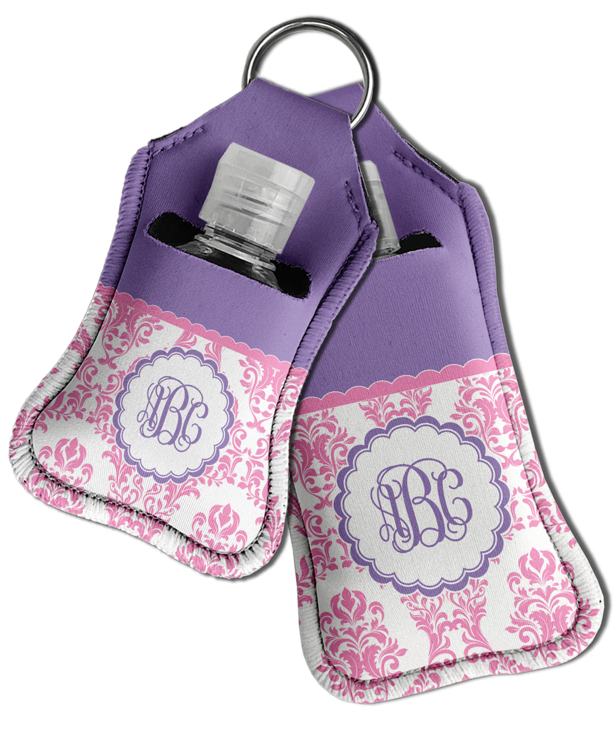 Each hand sanitizer holder comes with its own empty travel-sized, refillable hand sanitizer sure to fit snug in your customized sanitizer case! Our hand sanitizer cases are a durable, yet soft neoprene material sure to last any daily activities or travel agenda. Customize and personalize a hand sanitizer bottle holder with one of our two sizes - small (4.25" x 2.25") or large (5.5" x 2.5"). Each travel sanitizer holder comes with a keyring for attachment on bags, keys, or more!