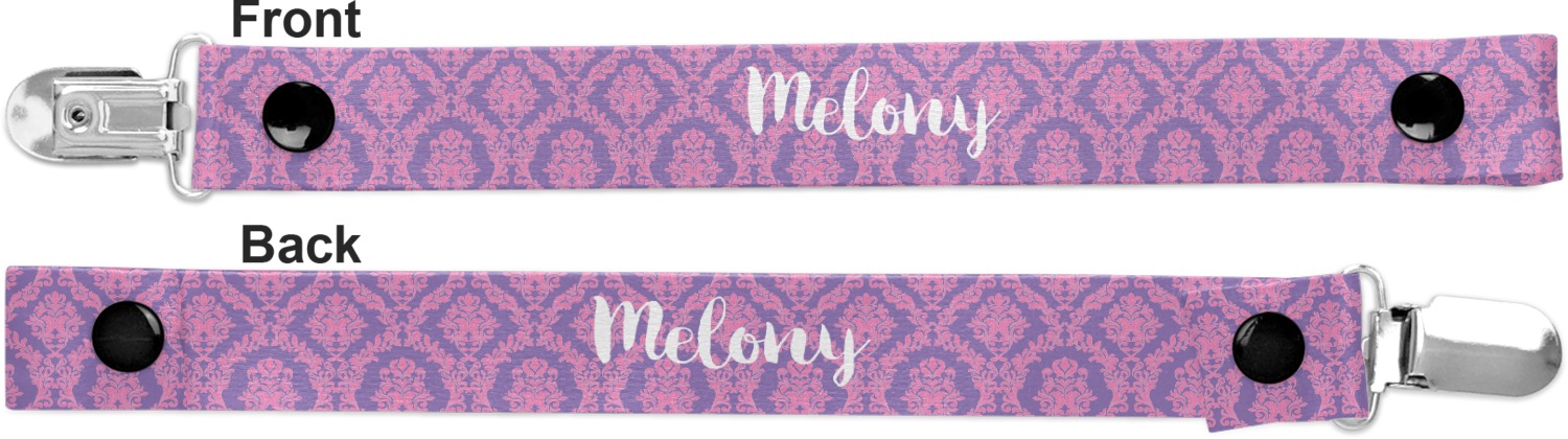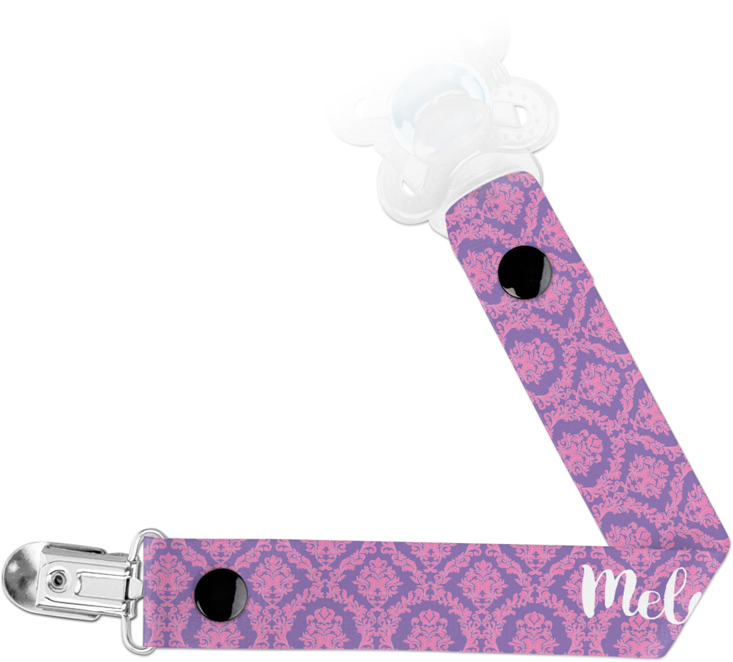 This personalized pacifier clip is the ideal size and measures at approximately 7.5 inches in length, when either end is snapped closed. On one end, you'll find a snap button. This button of your baby's pacifier holder is what can be attached to their pacifier to hold is securely in place. Simply open the snap, slip it through the pacifier opening, and snap it back into place. On the opposite end of this baby pacifier holder, you'll find a metal clip that can secure to a baby's collar or sleeve. This clip ensures that the strap stays in place, and that your baby's pacifier is always on hand.