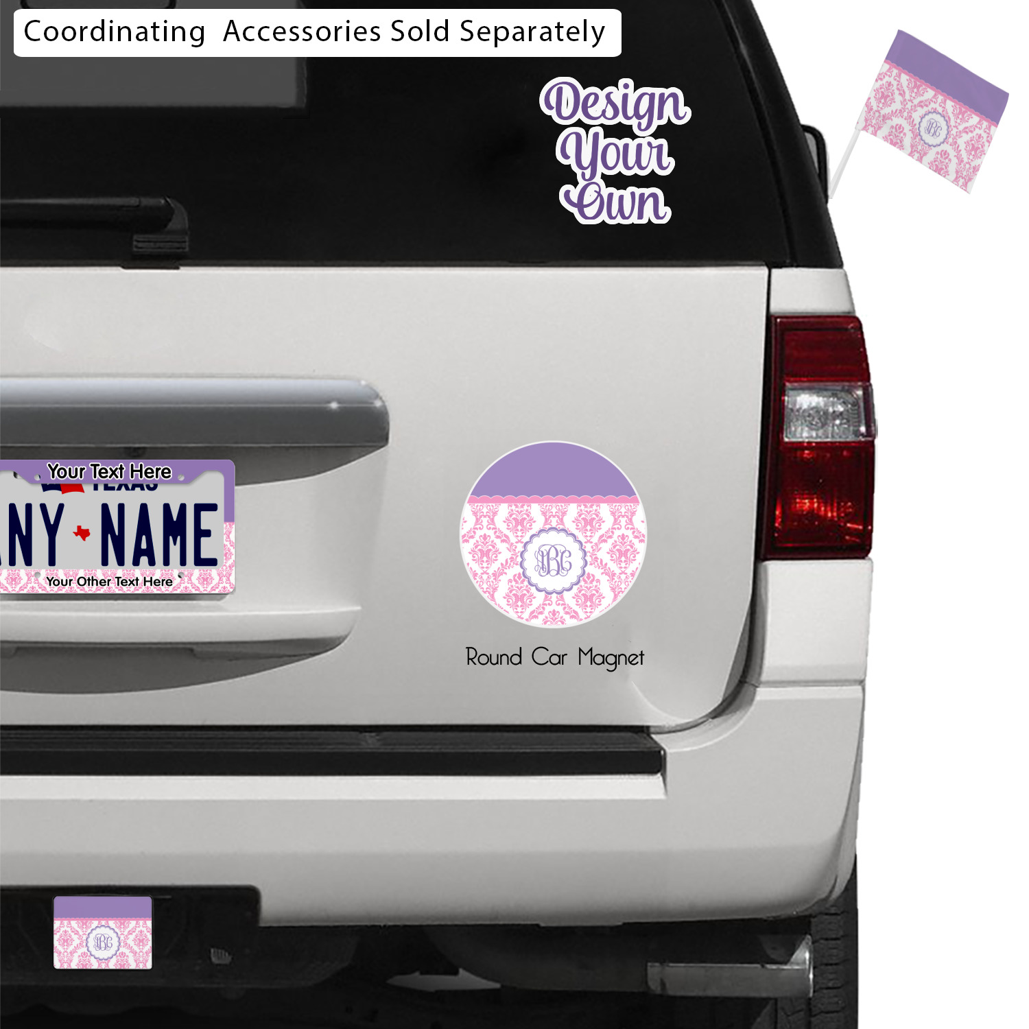 Hoping to make a more dramatic impact on the style of your vehicle's interior? Browse our Car and Automotive department for even more, dazzling, decorative options! Try personalizing a pair of car floor mats, steering wheel covers, or custom seat covers. We also carry some classy, minimalistic options, such as USB car chargers, custom car stickers, and car magnets! The options are limitless.