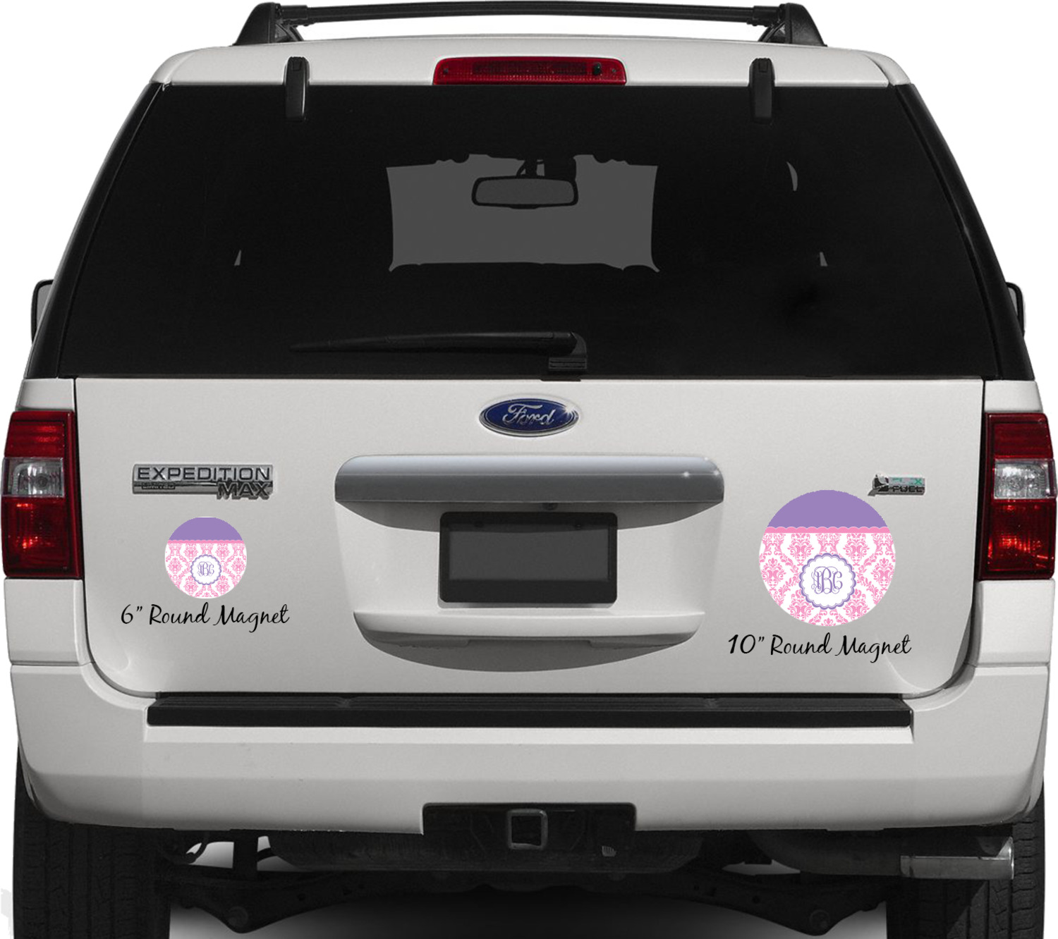 Your personalized car magnets are available for purchase in two shapes and two sizes. We carry round and square editions; each shape can either be 6 by 6 inches, or 10 by 10 inches, depending on your needs. Both versions are 1 millimeter thick, which is considered, within the industry, as the ideal thickness for automobile magnets. The magnetic car decals will adhere to any smooth, metal surface of your cars body, such as the trunk door or a side panel. However, please note that some vehicles are constructed from fiberglass bodies, which prevents the adhesion of anything magnetic. We advise that you test your vehicle before purchasing these magnets.
