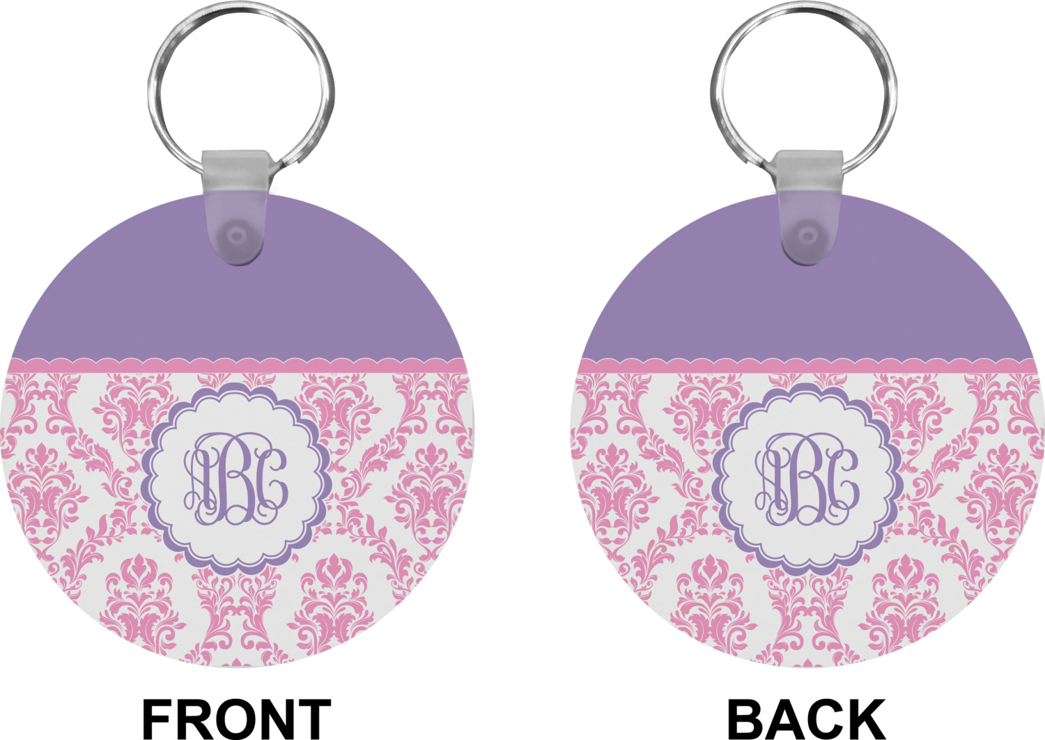 Our personalized keychains attach to the included metal, split key ring with a plastic, removable snap. Since a metal ring is included with your purchase, you have the liberty to keep your keys together on the ring, with or without your unique keychain. We offer this keychain in three different shapes: circle, heart, or diamond. We print your personalized design(s) on both sides of the key chain, and the surface has a glossy, reflective finish that only emphasizes your design. Each keychain is approximately 2.25 by 2.25 inches.