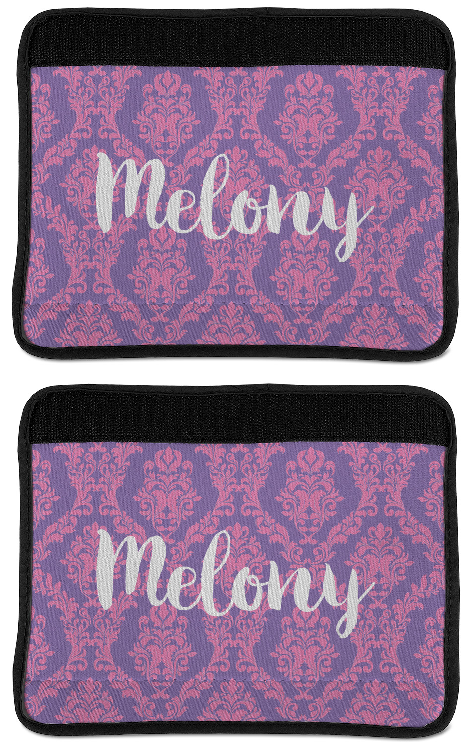 Made from neoprene, our seat belt strap covers wrap around the belt itself and have a Velcro tab for easy attachment and closure. The belt's edges are trimmed with a black polyester for a secure finish. Each cover is 9.5 by 7 inches when open and 9.5 by 2.5 inches when closed. We print your personalized design on the face of the seat belt pad.