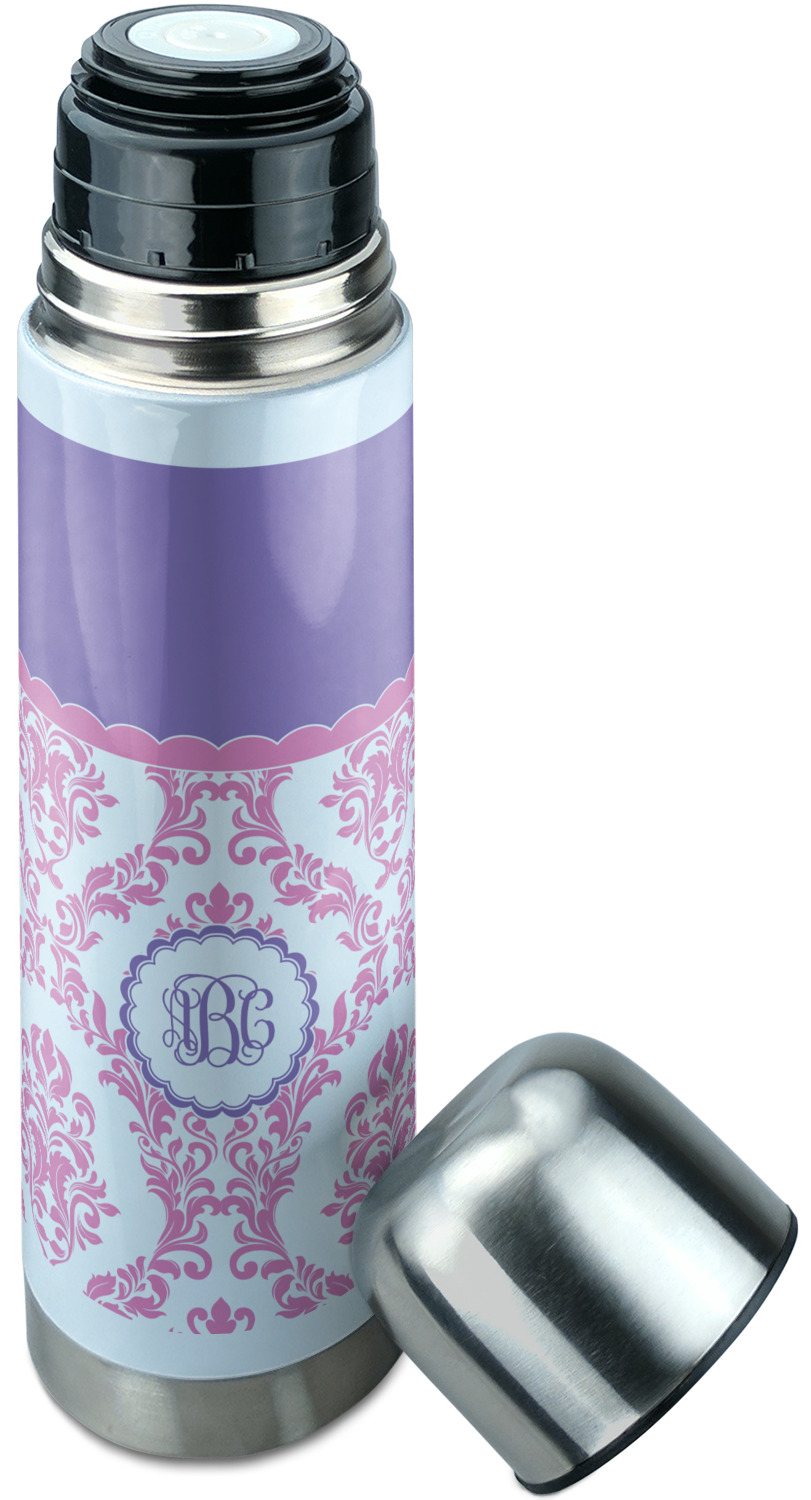 Manufactured from stainless steel, this thermos is built durably and double-walled insulated to preserve the temperature of your drink for hours. It also features a screw off lid that is made to also function as a small cup. Upon unscrewing this part of the thermos bottle, a pop-open, pour feature emerges. This feature allows you to slowly pour your beverage into your lid, ensuring a steady, controlled pour into your lid or other cup. With a capacity of 25 ounces, these large thermoses can hold several servings of your favorite beverage. Your customization is displayed all around the bottle with bright, vibrant color.