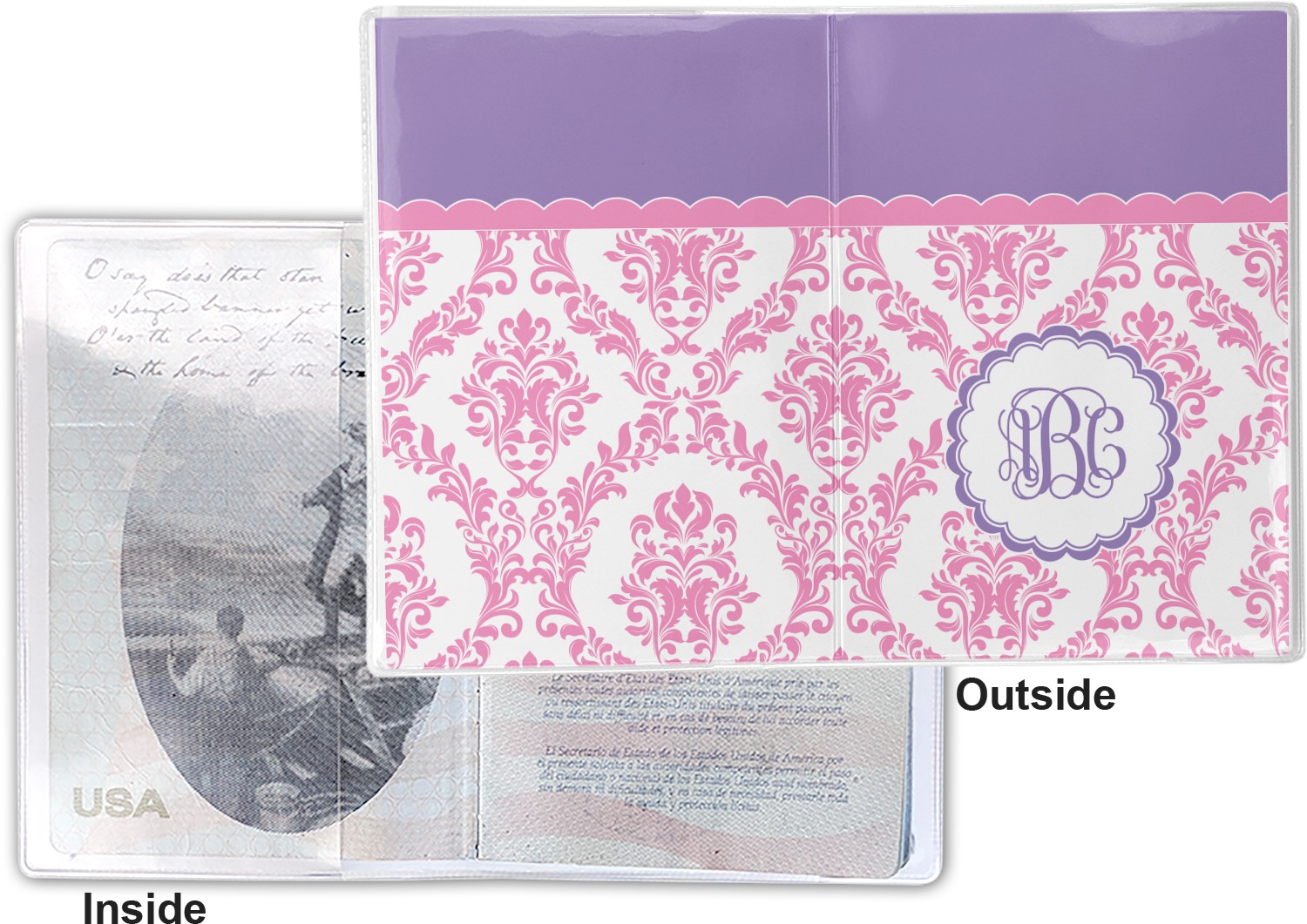 This cover is made of a sturdy clear vinyl with a personalized vinyl insert inside. There is a large and a small pocket on either side to hold the covers of your passport easily and firmly. The passport holder is approximately 7.5" x 5.25", the perfect size to snugly fit your passport. This slim cover is the perfect way to protect your passport without being one more bulky item you have to carry.