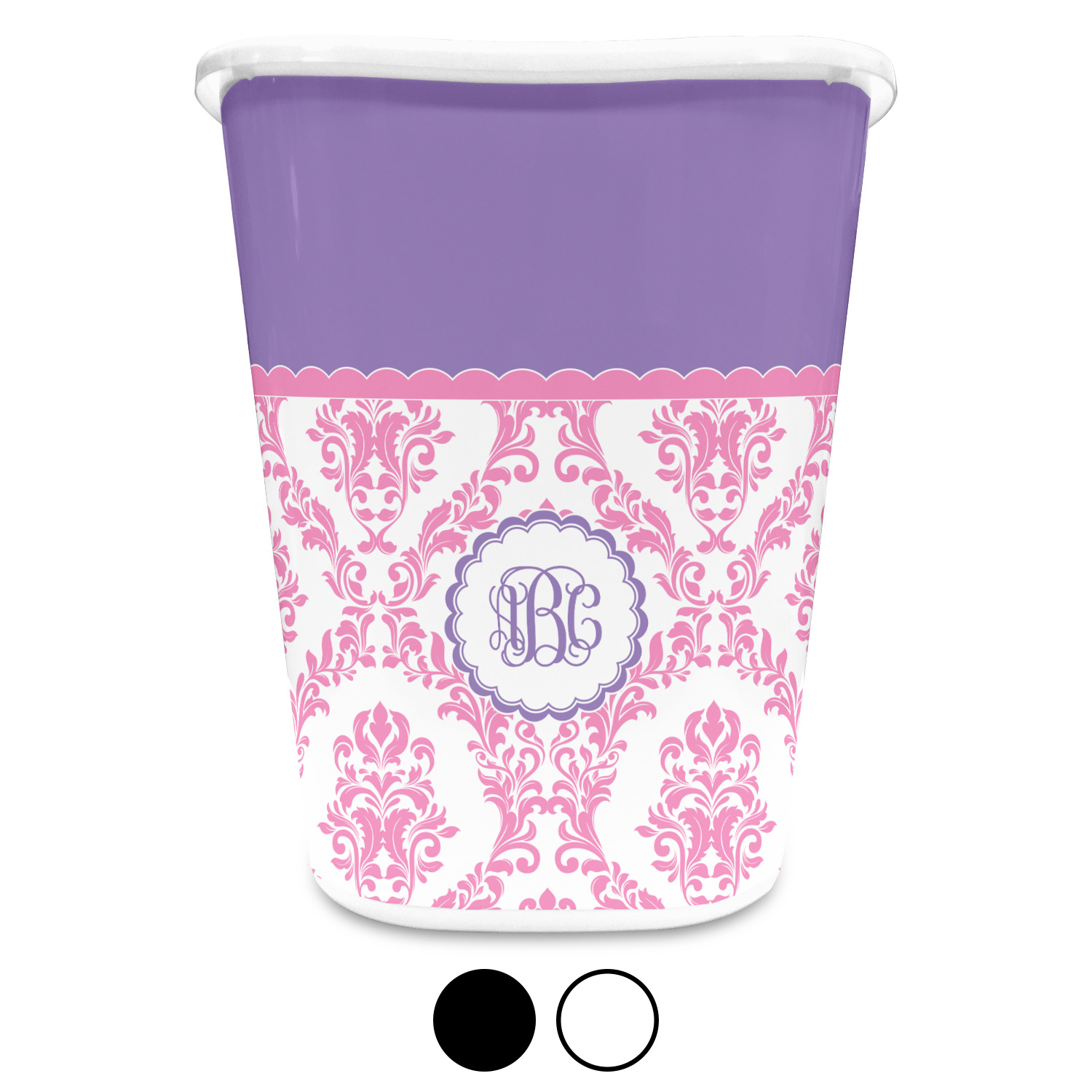 You can choose to purchase these decorative wastebaskets in either a white or a black color that will show on the base and the upper rim. Your customization is printed on a high-gloss, fine-quality vinyl adhesive, and you can choose to either have this adhesive applied to one side only or to both sides. As such, this plastic wastebasket can be single-sided or double-sided, depending on your creative vision. Your customization is printed using durable inks, making the design waterproof and resistant to fading over time.