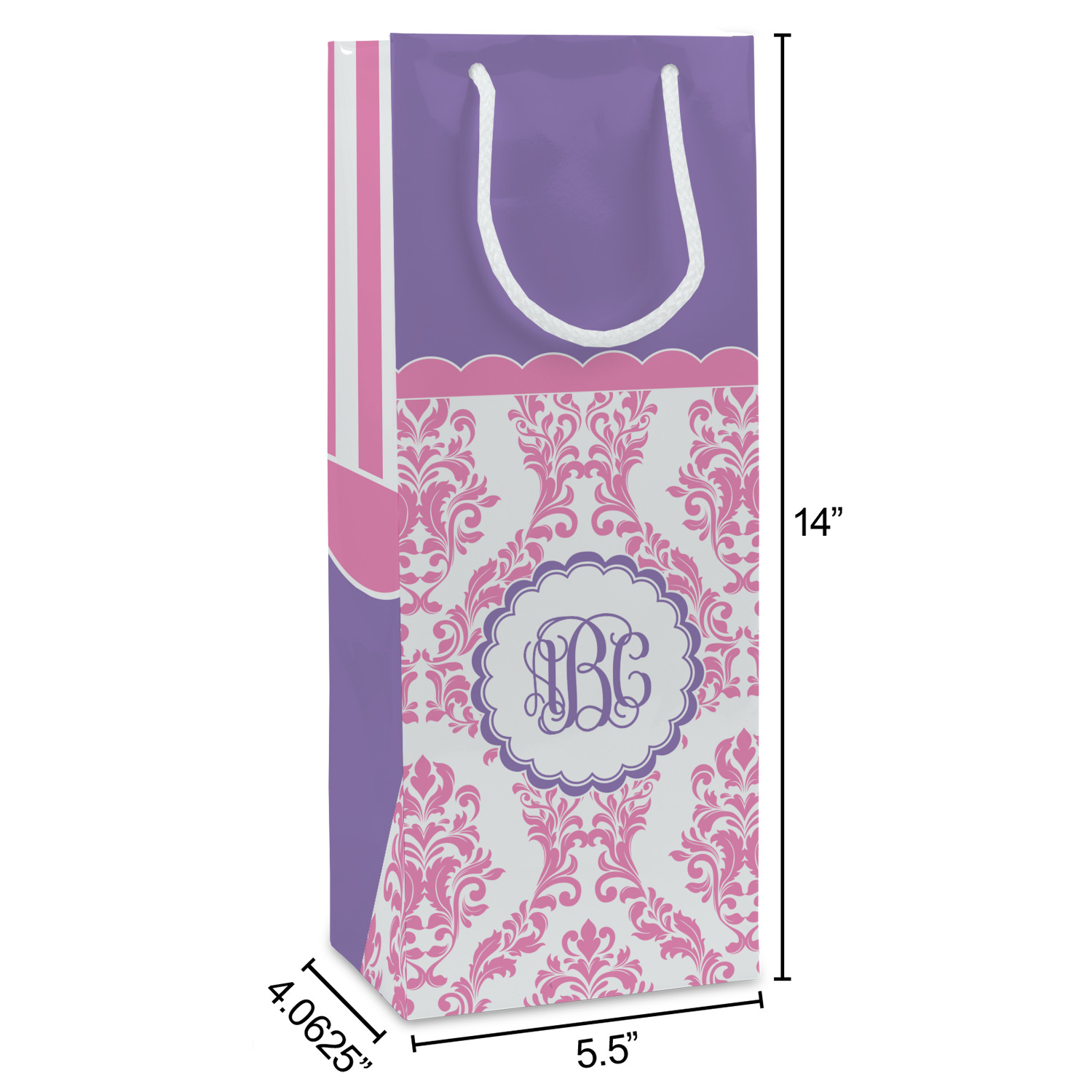 Our wine bags are printed on premium paper. The bags are then cut, scored and folded. The handles and cardstock base it attached. These custom wine bags are printed and made in the USA.