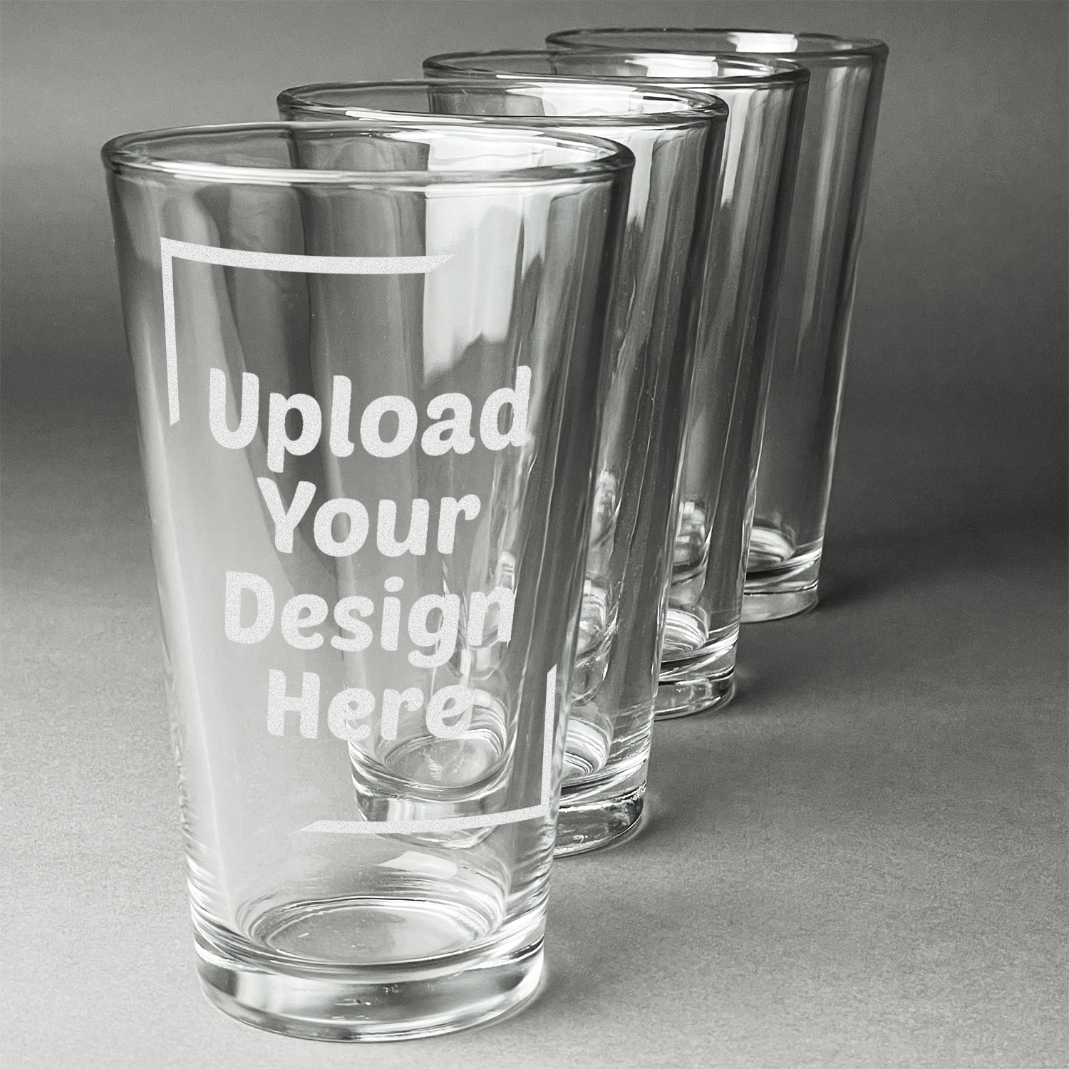 Available in a single glass or a set of 4 - each glass will be custom engraved with your design. Each glass holds 16 oz and measure 5.75"H x 3.5"W.