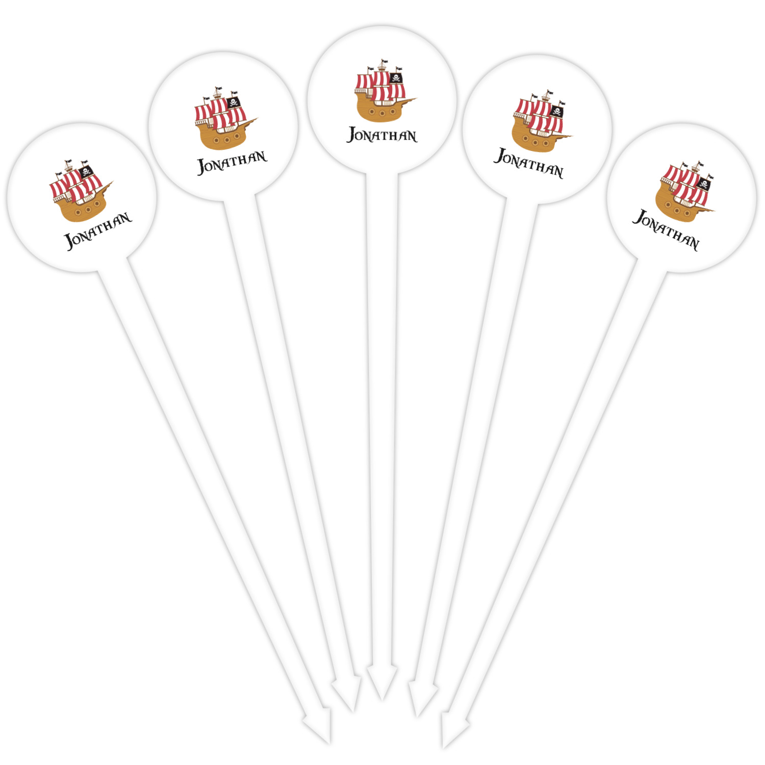 Pirate Ship Designs for 4" Round Plastic Food Picks - White - Single-Sided