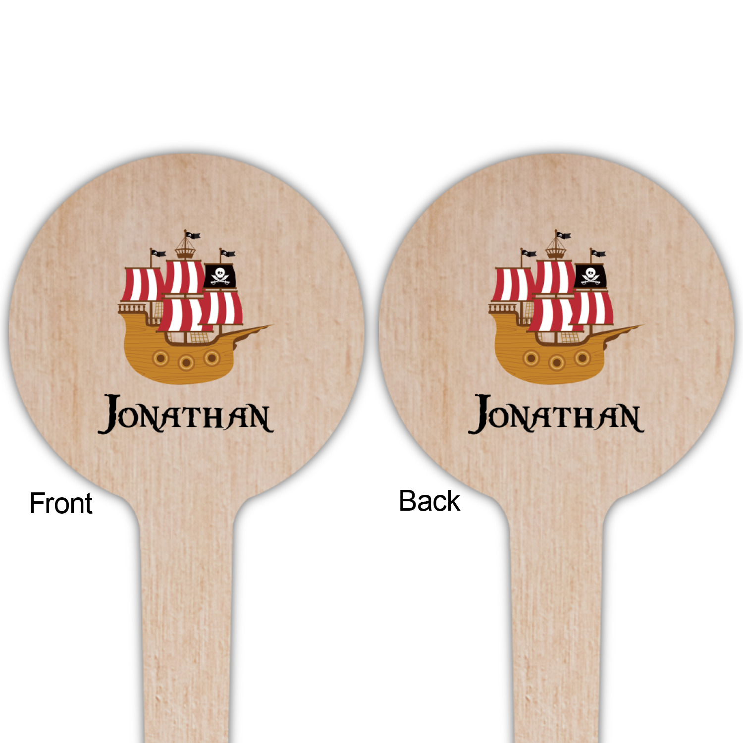 Pirate Ship Designs for 4" Round Wooden Food Picks - Double-Sided