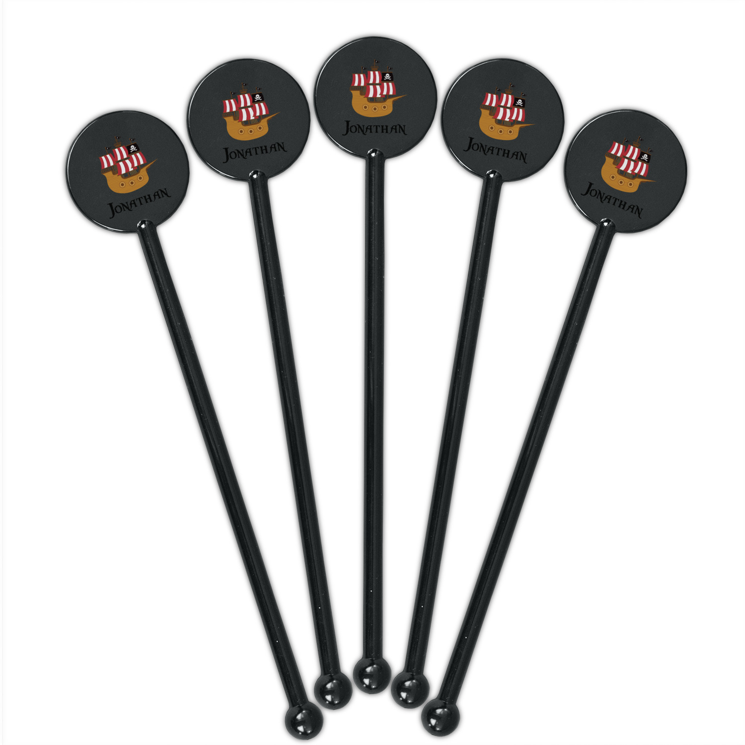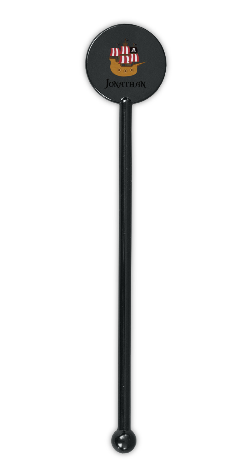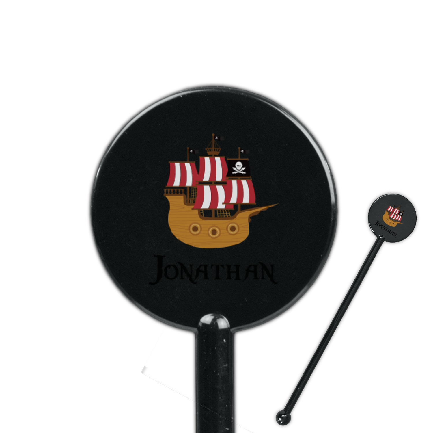 Pirate Ship Designs for 5.5" Round Plastic Stir Sticks - Black - Double-Sided