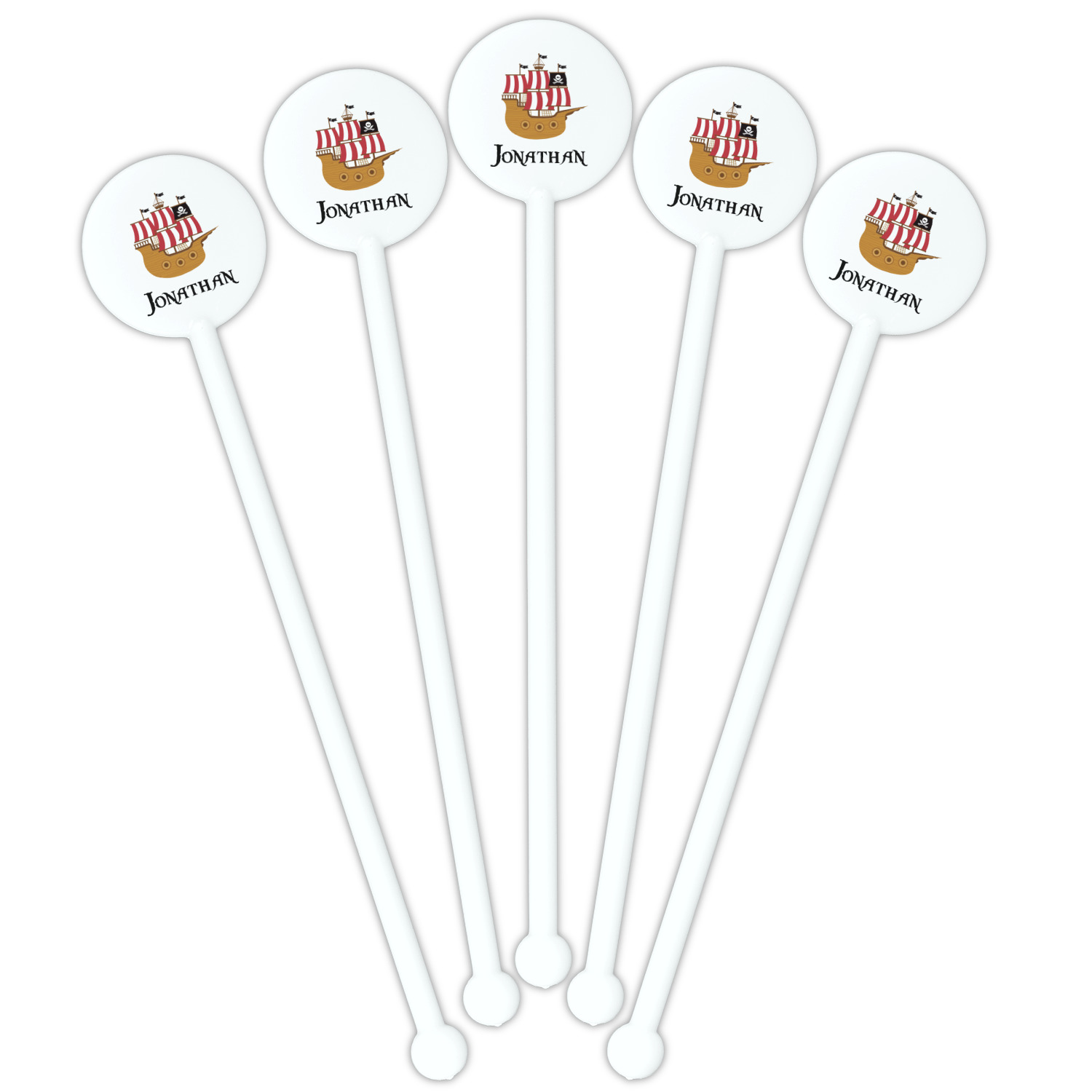 Pirate Ship Designs for 5.5" Round Plastic Stir Sticks - White - Single-Sided