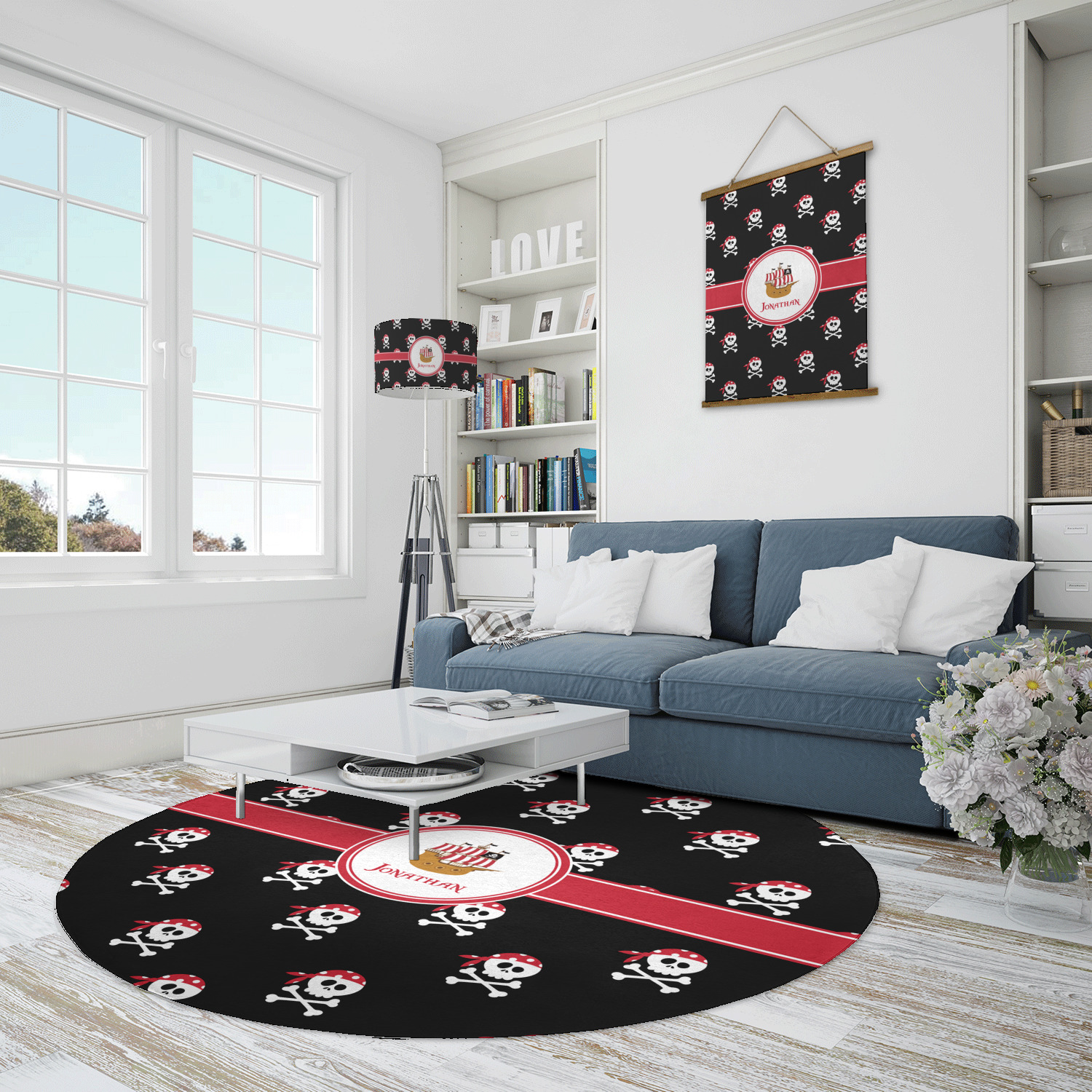 A circle label will have your little pirate imagining he or she is looking through a telescope seeing a pirate ship in the distance. Add personalization to bring this entire design to life.